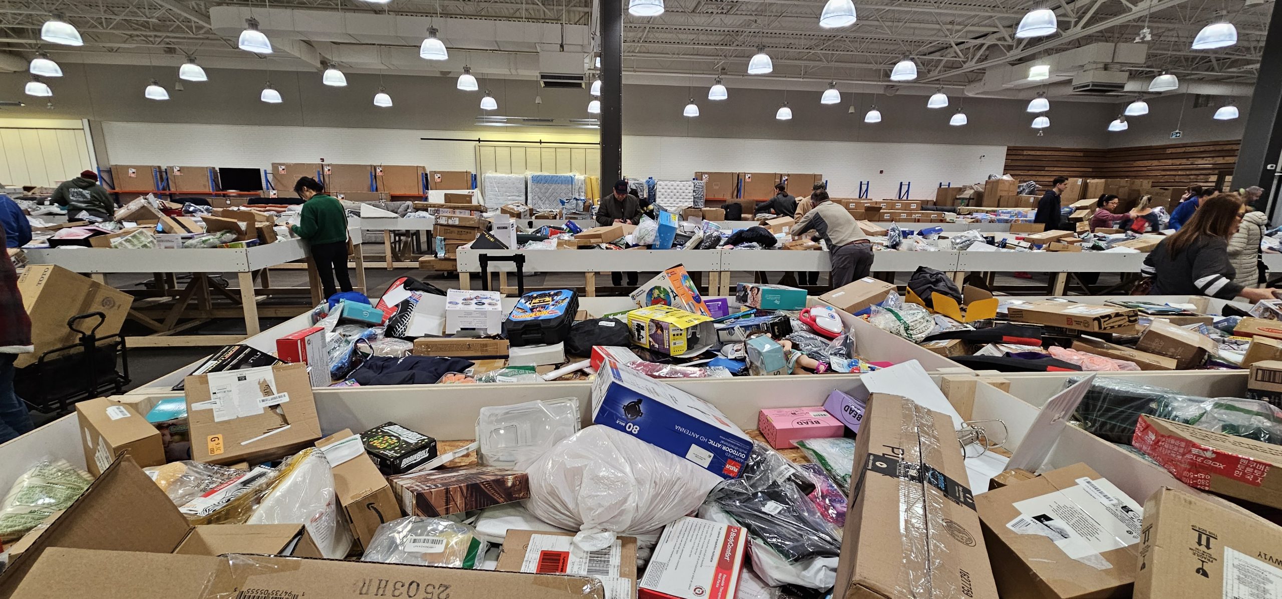 It turns out a lot of the stuff right after opening time on Thursday were still in boxes, and a good handful of the boxes were still unopened even when I got my grubby hands on them. I got to open several boxes to peek inside of them (many were labelled on the outside, but not all), and that was a nice visceral feeling too, to be able to open packages without having to pay anything, heh. Also, a lot of the packages that I remember seeing were Amazon packages addressed to people in Vancouver, BC. Odd that they ended up here!