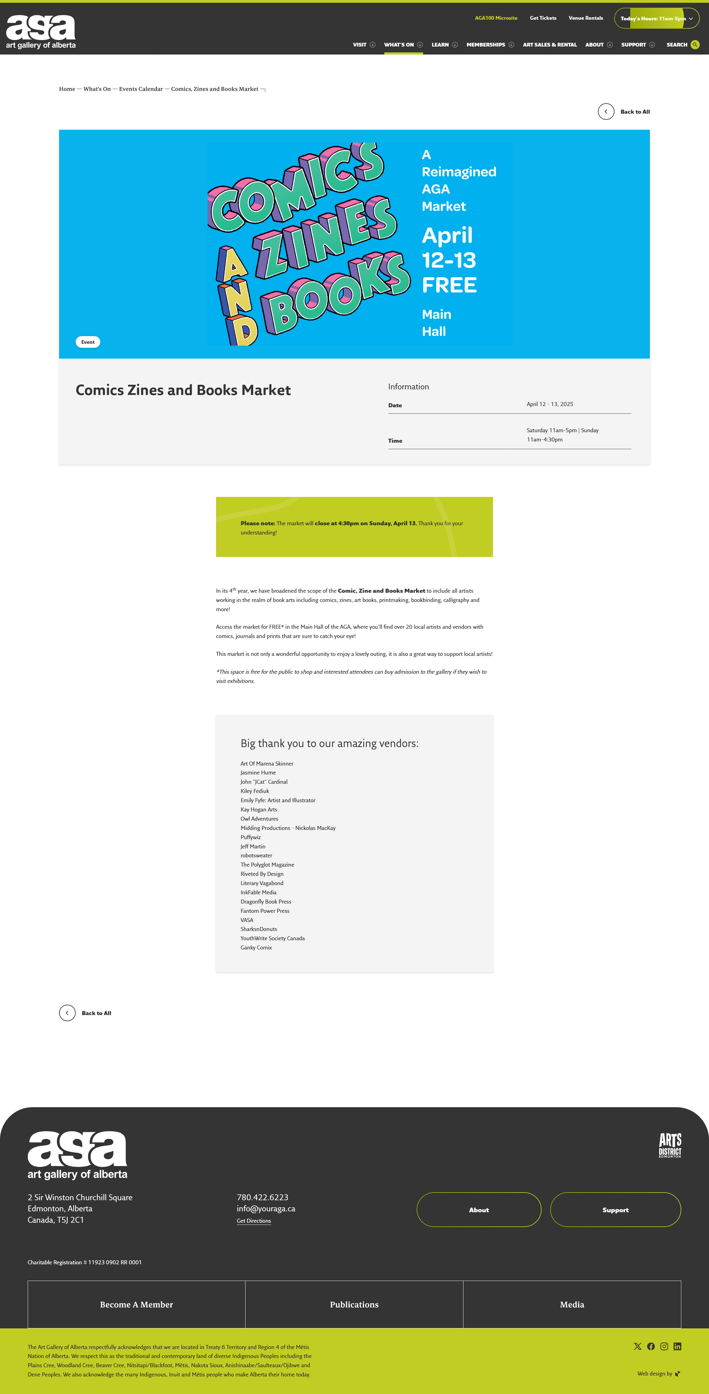 This event that I picked was directly on the LRT line itself, so travelling to and from that place was only about half an hour each way plus a bit of walking. This was an event called the Comics, Zines, and Books Market (local), and was in the main foyer of the Art Gallery of Alberta, next to Churchill Station.