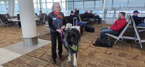 The other cool event that occurred was that I ran into someone named Maggie, from the Pet Therapy Society of Northern Alberta, walking a giant dog between the gates of the departure area and inviting people to pet the dog. The dog’s name was Jaxton, he was ginormous, and very pettable and docile. A little bit of drool constantly dribbled off the edge of his tongue, but he wasn’t overly excitable or anything. Just loved pets. Who’s a good boy, then? I don’t mean you, Tigey.