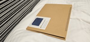 I had realized something at this point too — in addition to bringing my Surface Pro 10 that I had ordered in May of last year along, I had also brought along a small, protective box that it had come in, and although the box is small and lightweight, it has the tiniest of spines and thus has a certain form of rigidity to it that, say, a clear plastic file would not. I had brought that along in my main bag, and it paid dividends immediately, becoming instrumental in keeping papers from the day get too crumpled or lost in the labyrinth of my bag. i was happy about this.