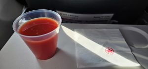 Why yes, I did help myself to a little bit. They did give out a lot of drinks all in all, and I had tomato juice (my usual) x2, apple juice, Japanese lemonade, green tea, and black tea at various points in the flight.