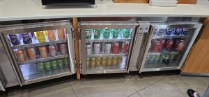 This luggage line took about ten minutes for my bags to get to the front, and when it finally got to the front, the guy looked quizzically at the bin and the X-Ray snapshot, and asked if I had put the bag on top of the laptop. I said no, and that I had done it in front of another attendant who had said it was fine as is, so the guy in front of me dealing with my bin said that the bag probably fell onto the laptop when it was being scanned then. And instead of just checking/clearing the two items anyway, he moved the bin back to the very start and split them into two separate bins, one for the laptop and one for the camera bag, and forced me to go through the queue again. He seemed confident that both would just pass this time, but no — the laptop passed this time but the camera bag went back into the clogged queue AGAIN. And so I had to wait ANOTHER ten minutes for it to get to the front of the line, whereby a different person, a lady guard this time, checked the battery wattage, declared they were fine, and handed the bag back to me. What a waste of time. I was mildly annoyed so I took a picture of the counters even though I don’t know that I was actually allowed to do such a thing.
