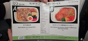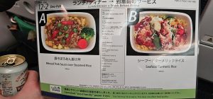 The couple next to me got handed a laminated piece of paper to choose their meals from, so I asked that he held them up so that I could take a picture of those too: