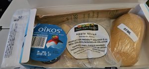 They then gave out the “second meal” two hours or so before landing, and this one was just the disappointing breakfast, though it came in a nice box: