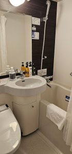 So I was glad when I reached the hotel room and there was a bottle of water waiting for me. The hotel I was staying at was the APA Hotel Keisei Narita Ekimae, in the city of Narita that both the station and the airport were named after, and my 8th-floor room looked like this: