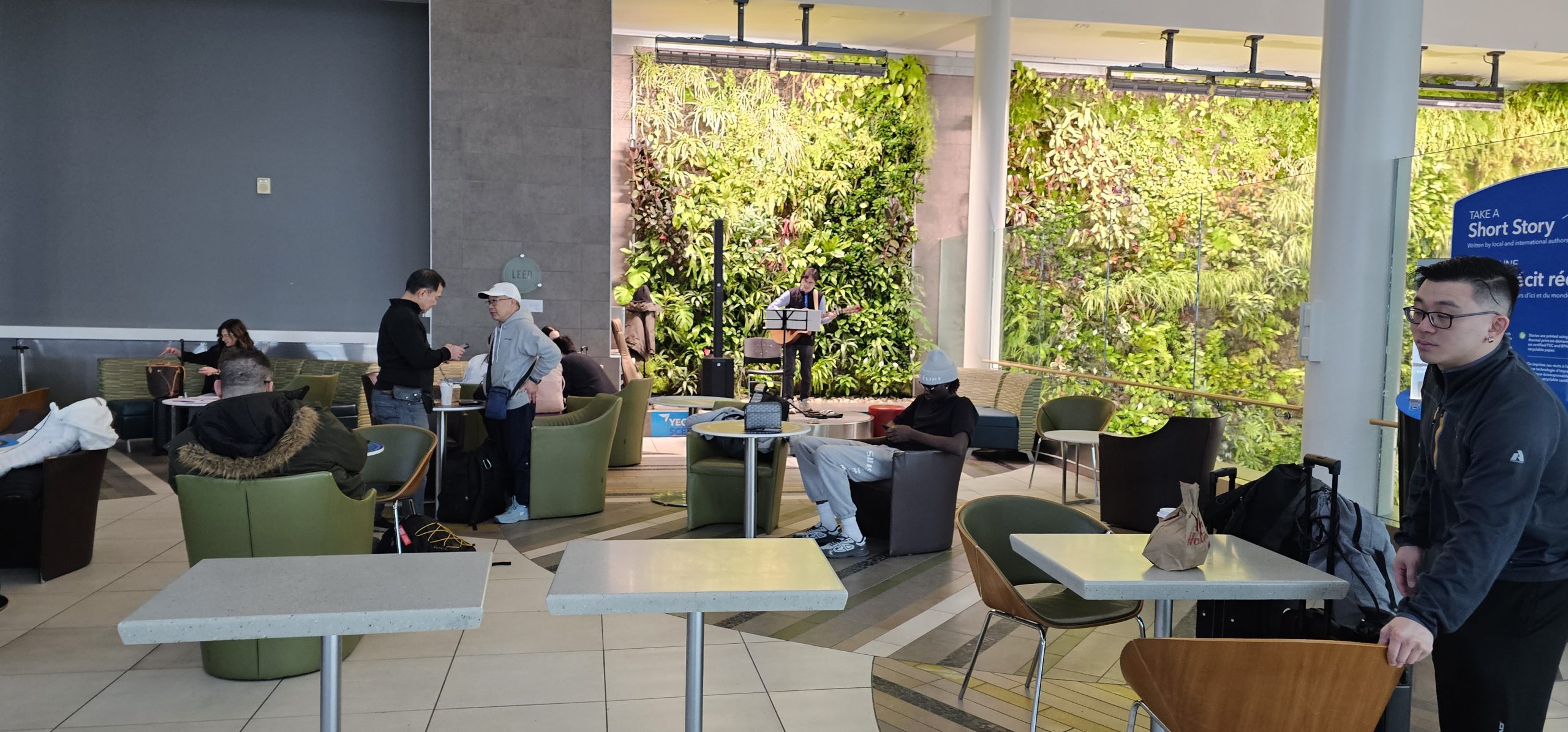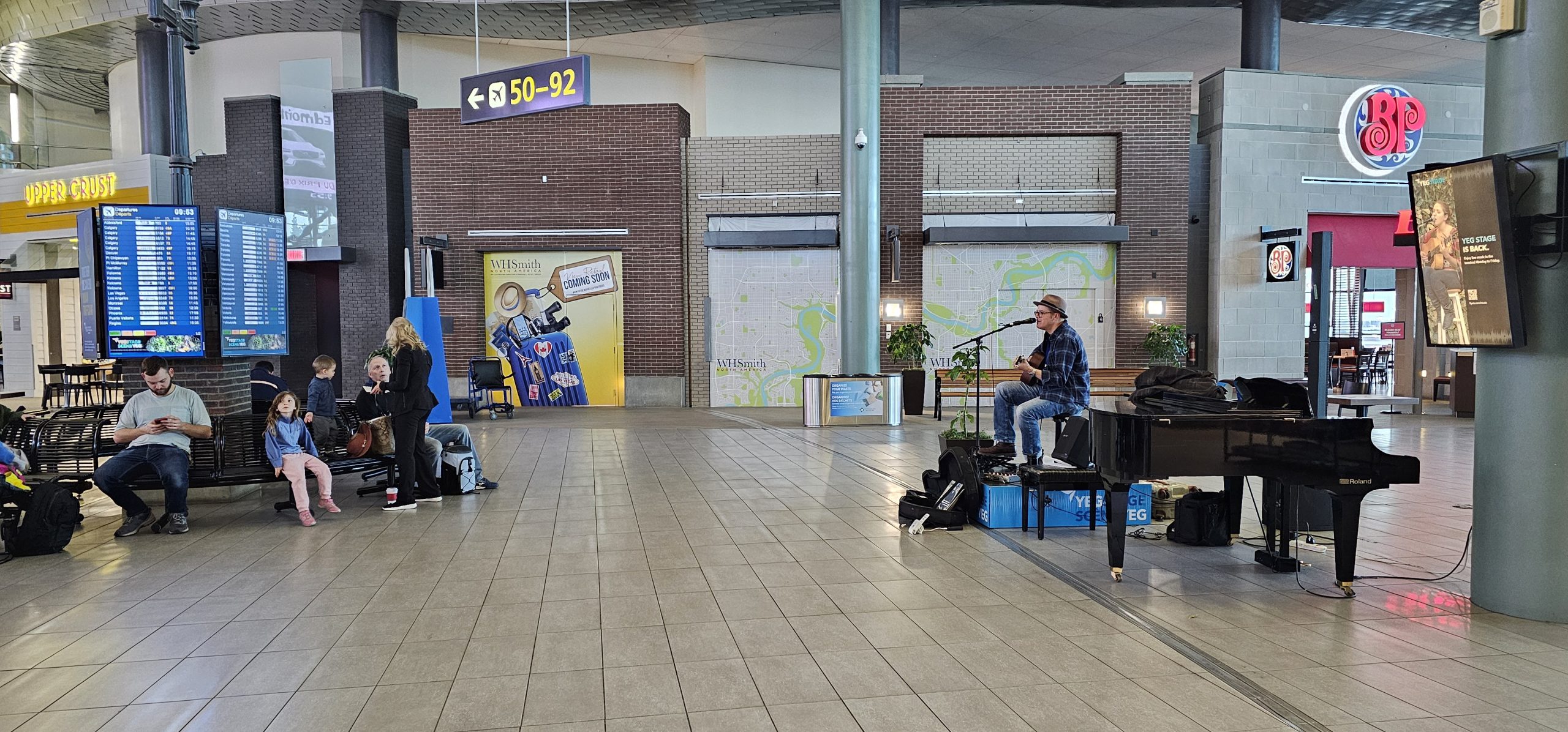 Noted these two buskers performing live music in the airside terminal itself, past security: