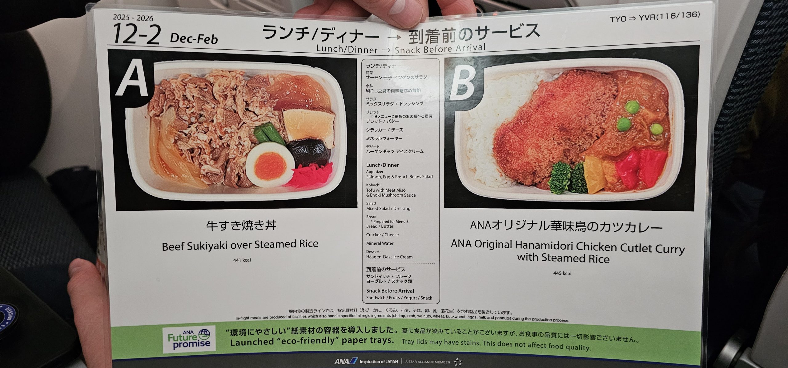 I thought at the time that this represented “meal 1” and “meal 2” for the flight, but upon reviewing the pictures back in the hotel much later on, I see that one of the two was for the Vancouver -> Tokyo leg and the other one was for the Tokyo -> Vancouver leg. How weird.