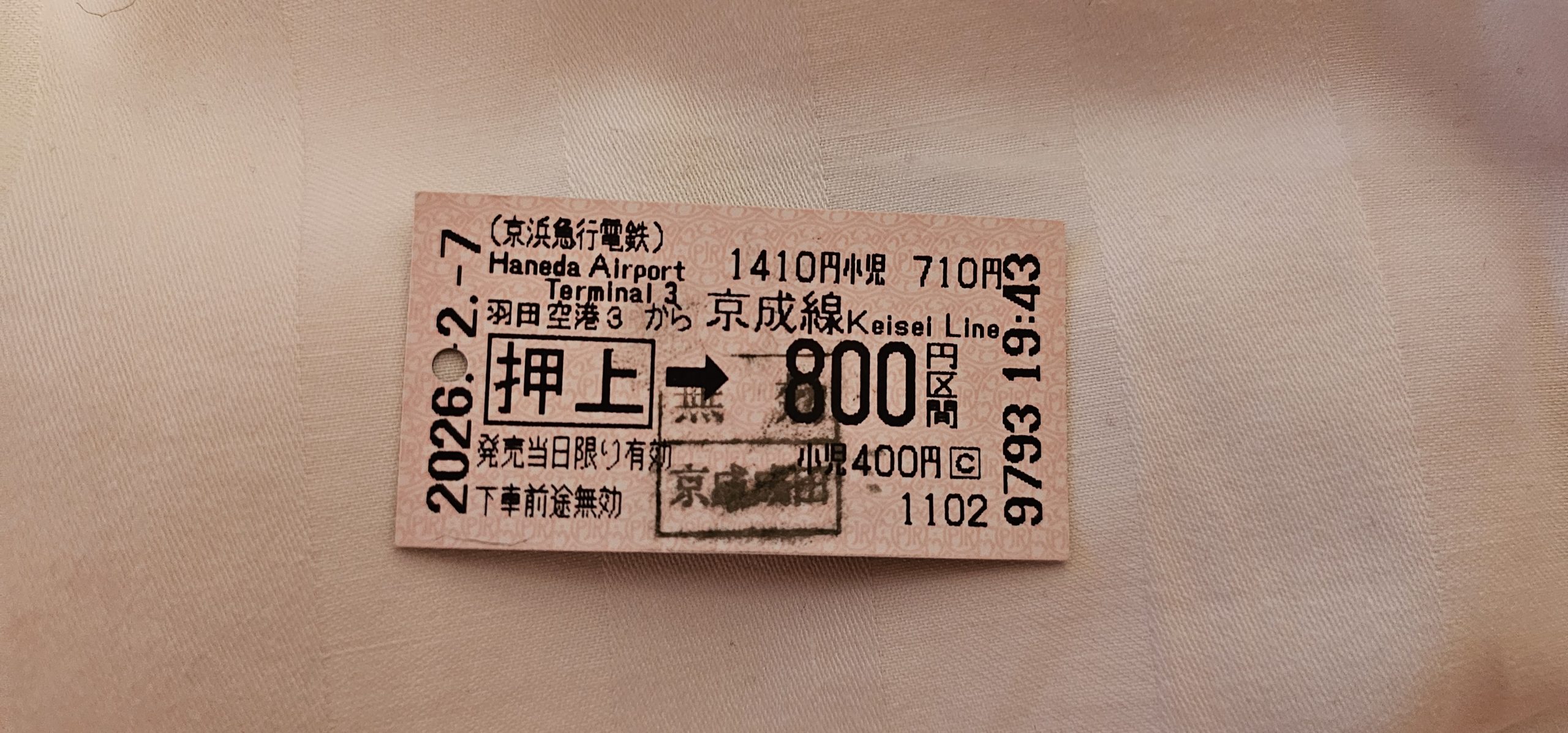 Either way, Keisei-Narita was not written on the ticket at all. Except until the very end, when the kind station operator stamped the it with the mukou-in (lit. void stamp), which so happened to contain the name of the station, itself. That’s the 京成成田 at the bottom. So it kinda worked as the bots said it would? Kinda sorta?