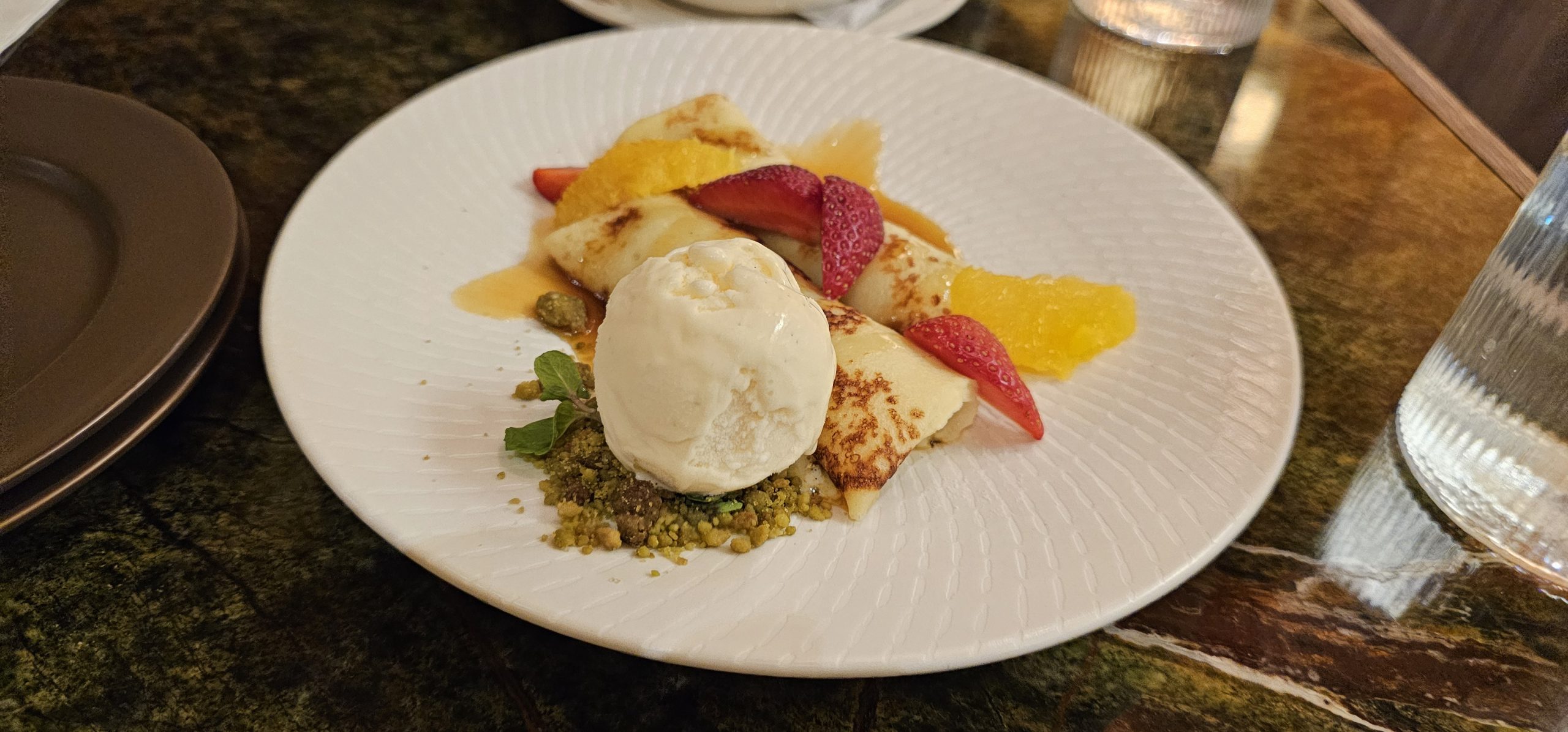 I didn’t take a picture of the boutique cafe we ended up at, nor its building, but we settled into a quiet corner of the cafe for a long chat, and I ordered a pot of tea named Sereni-tea to have while she had a cappucino. My tea had a fruity (or flowery?) taste that I liked but I failed to recognize exactly what fruit it was based off of. We also bought and shared a crepe with hazelnut ganache and a scoop of vanilla ice cream, which is not in my usual wheelhouse of food to eat but that’s why it was interesting to sample it with someone else. It was actually pretty good, but rather pricey, since it was a boutique cafe.