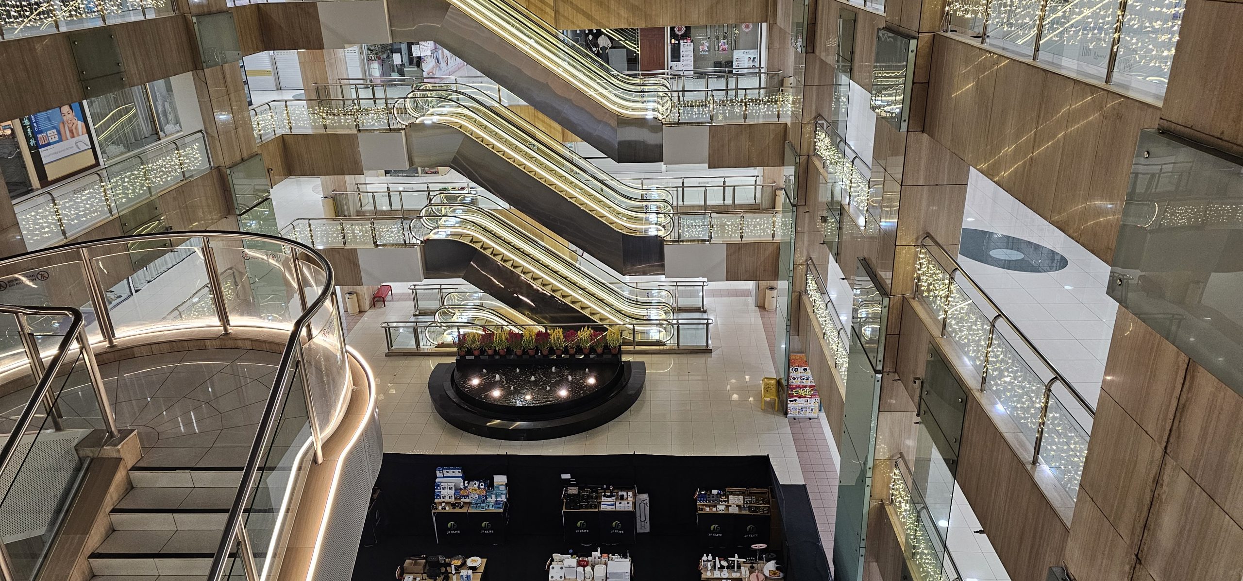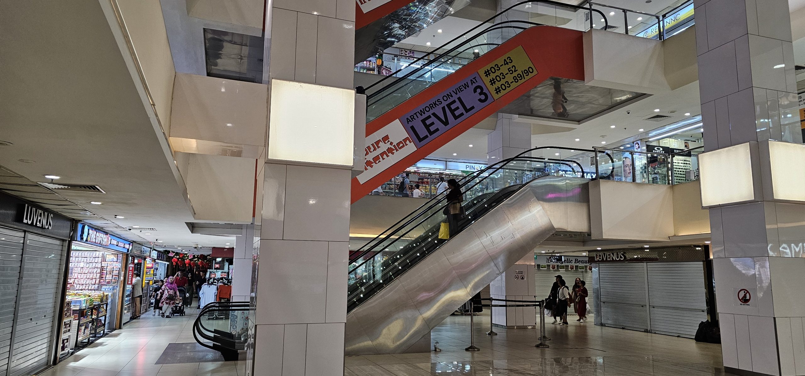 There was some sort of a sale exhibition set up on the ground level, but it was all closed up with black sheets since the mall was pretty much closed. The sheets didn’t stop me from taking a picture of it from the second level though