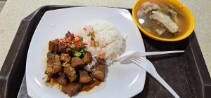 The mall’s layout was very weird, as it was a very tall mall with an irregular floor plan, containing a central corridor loop overlooking an atrium below plus one or two side corridor loops that were inconsistent. There was no way to cleanly walk each floor without doubling back at some point, and there were also side escalators that (I think) did not serve every floor, whereas the main one did. I first had dinner in a food court down on the ground floor though, at a stall called Lutong Pinoy. Their kitchen dishes were not available but they had a bunch of trays out on display, and they recommended their pork belly and told me to select a second item to mix with that, so I selected some sour soup. This turned out to be quite nice, though and I did enjoy the meal, I’m not sure it was worth the $10 that they charged. It was pricier than the premium fish ball mee I had that afternoon at that point.