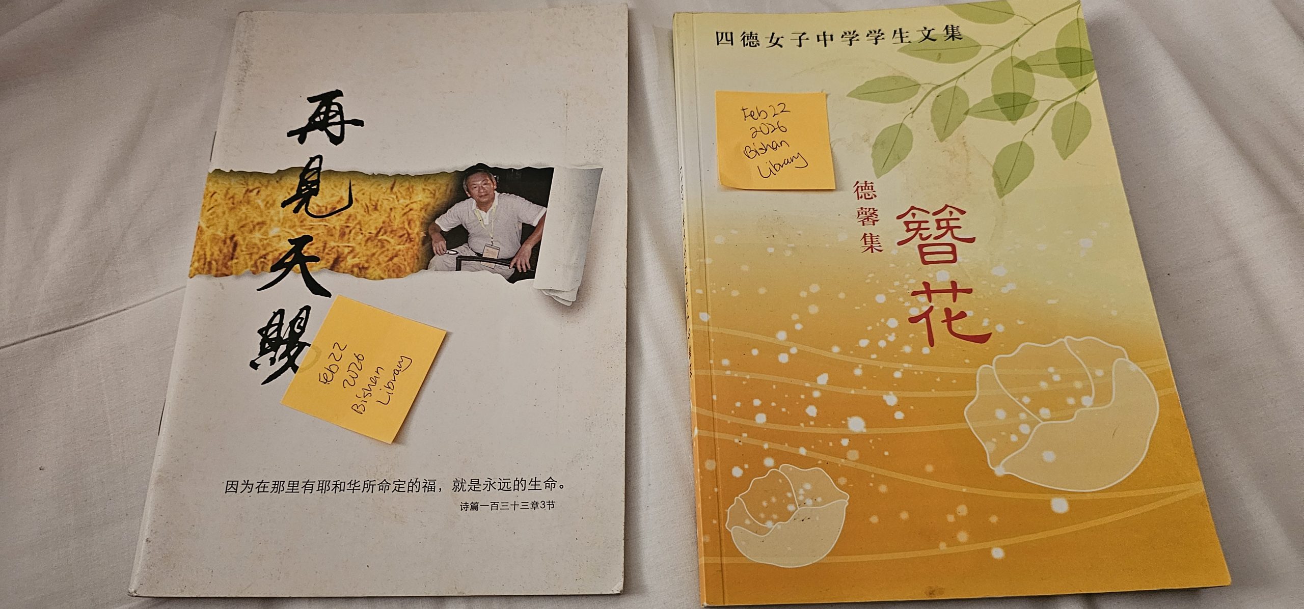 The left book seemed to be a rather personal memorial book for a Christian pastor or someone similar who had passed away over a decade ago, and the right one was a commemmorative book for Cedar Girls’ Secondary School with pictures and essays in it. Just the sort of hyper-local stuff I like to find and scan and archive!