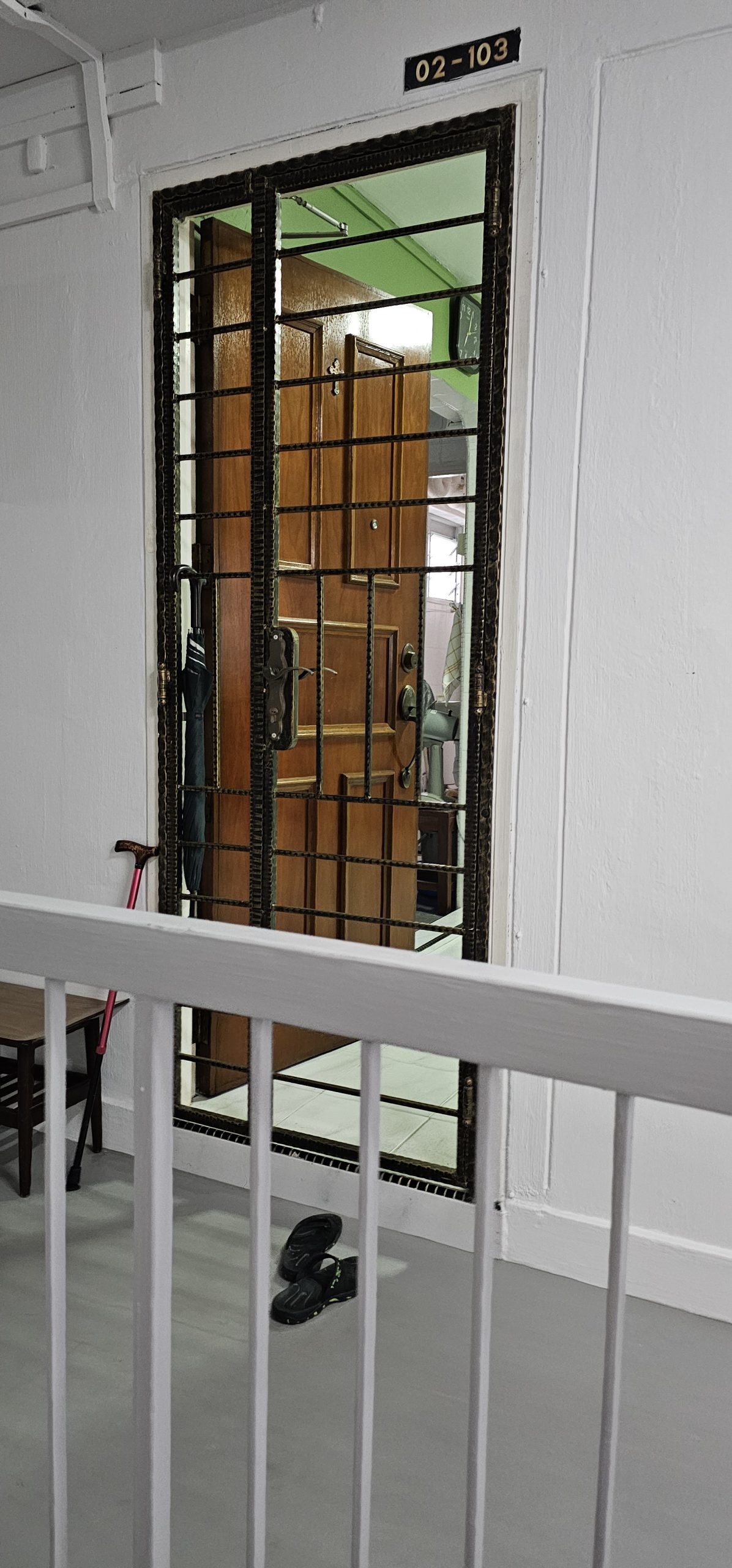 How nosy am I? I couldn’t see much of the kitchen but I could visualize how it looked like past the doorway, although I did not remember the corner turn with that wall window facing that direction there. I did remember the two rooms and their doors from the second picture though. And I also remember Ah Kong standing me outside this grille gate, right here, and holding a bunch of holy paper in his hand, running it up and down my body from my head to my feet, then up to my head again, over and over, to ward away bad luck. He did it right here.