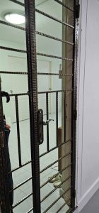 I walked past the door after taking those pictures, and then right after that an old lady actually came to the gate and peeked out of it. I thought she had heard me or something, but it turned out that she was just preparing to leave the apartment. What coincidence. I walked back past the entrance and down the stairs again, pretending that I was some other resident of the block that happened to just be passing by. I then snapped a picture of the old lady and her companion once they descended to the ground floor using the elevator.