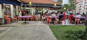Well, why not? So out into the heat I went. I got to the eatery 10 minutes after opening, managing to grab the very last free table outside by the road, and after “choping” it, as Singapore slang goes, a.k.a reserving the table with an empty tea bottle, I got in line at the cashier to make my order.