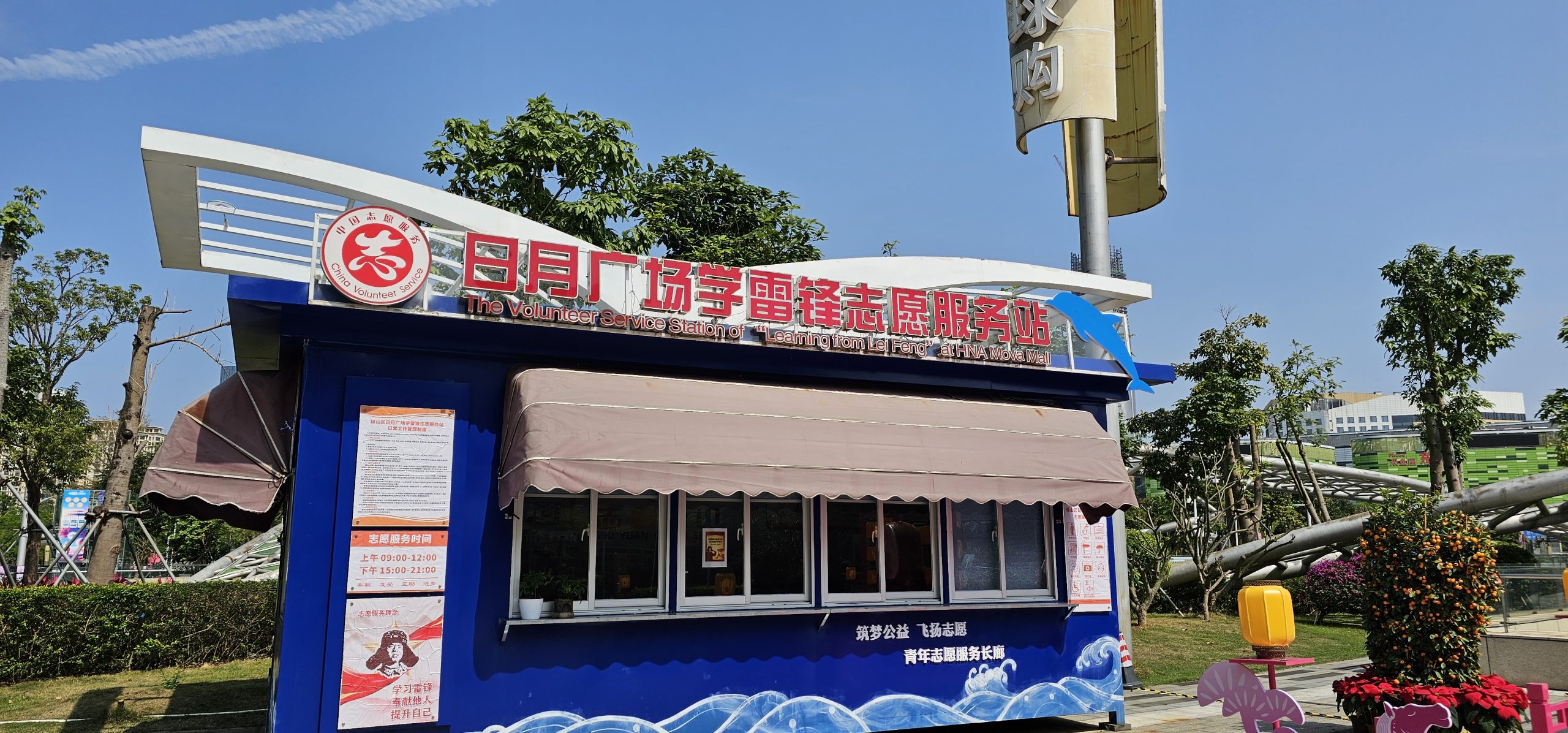 An information booth that was unmanned (but that was translated so weirdly that it led me down a rabbit hole to discovered who Lei Feng was):