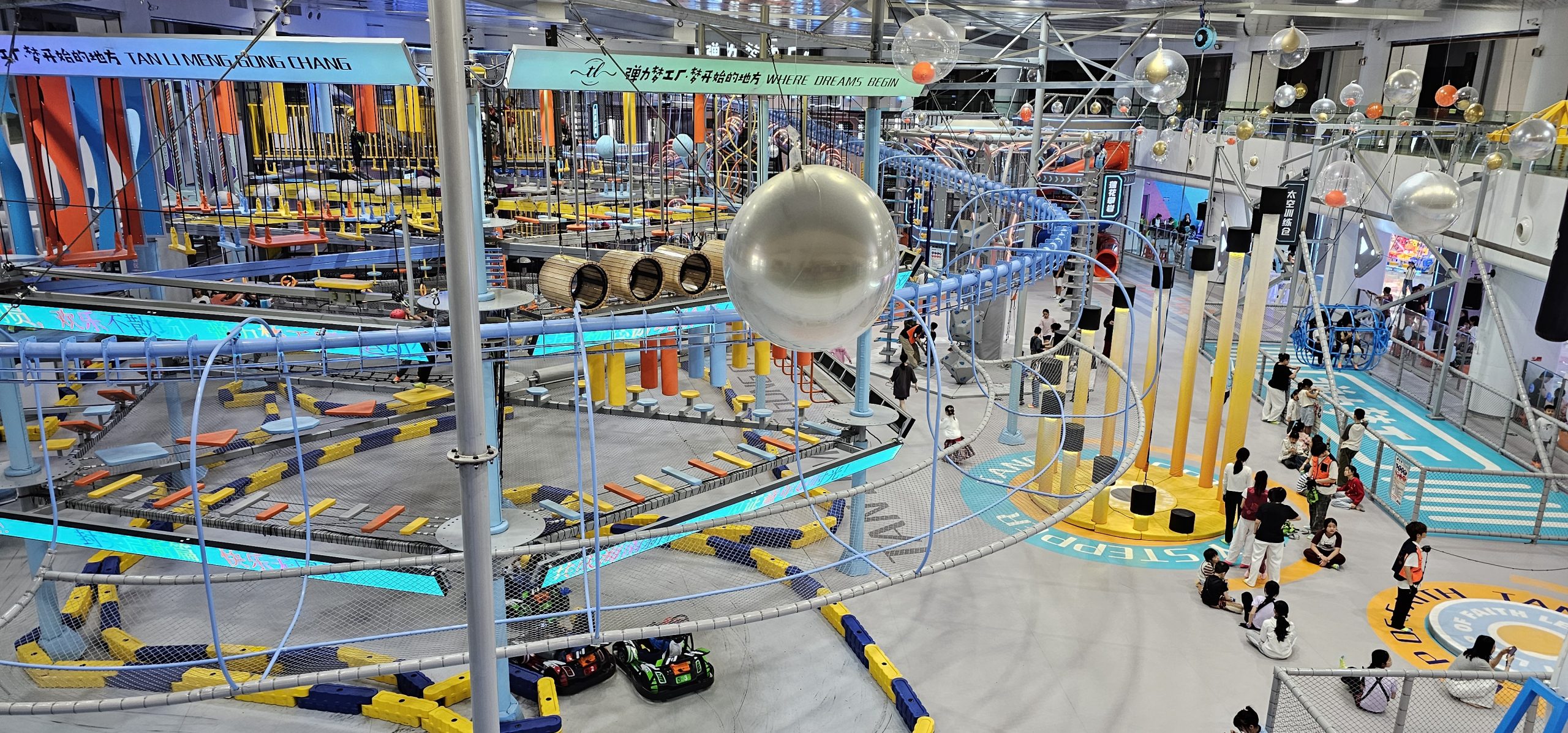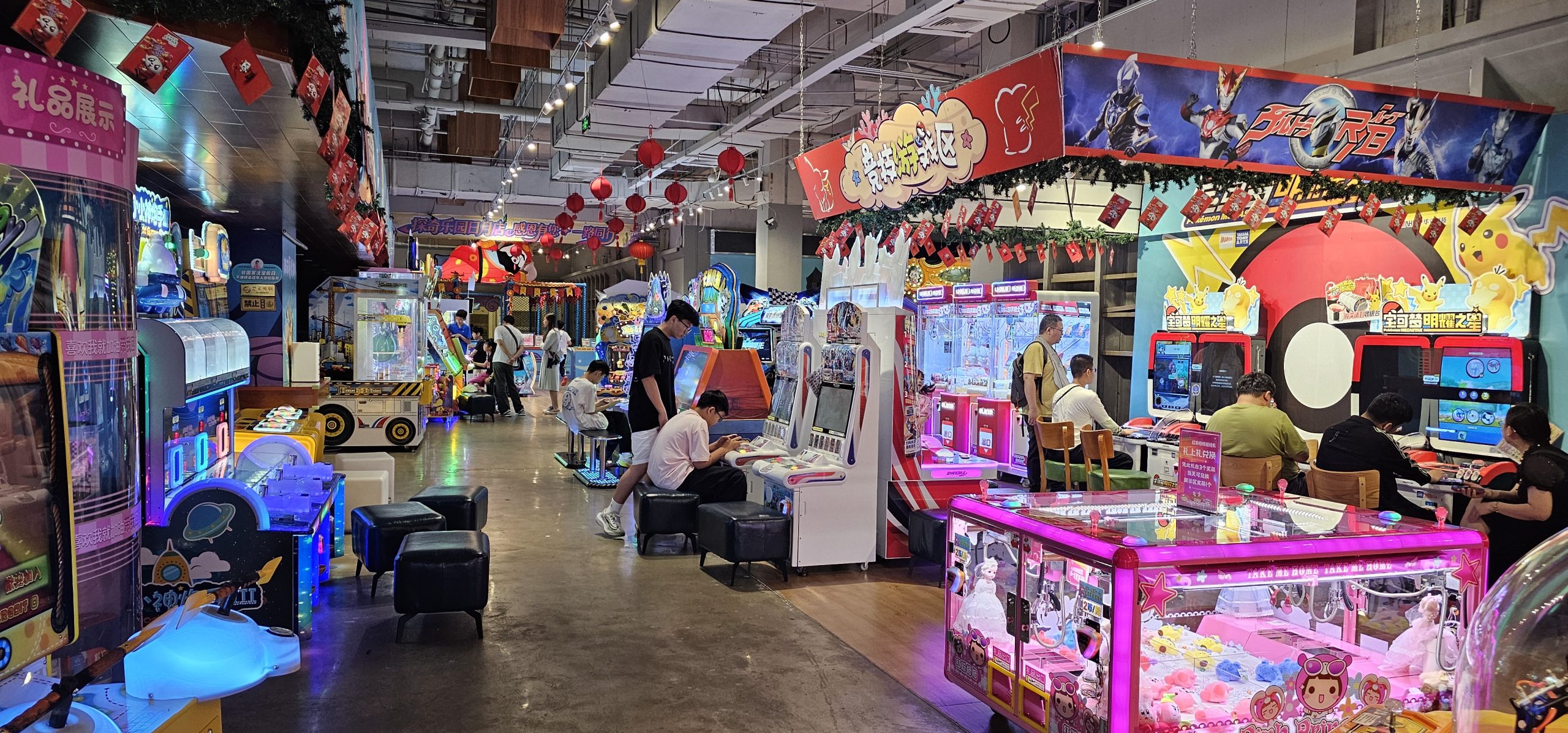 There were vast swathes of this, which I really enjoyed since I like the liminal mall sort of feeling. It contrasted so well with the packed REIT malls above. But even down here, there were hidden “pockets” of activity and semi-activity! Like this amusement park: