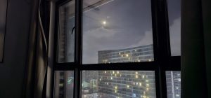 Pretty to look at, but nothing to actually do here, so i went back to my room after a few minutes. There was a bright half-moon out that I could see serenading me through my large bedside window: