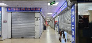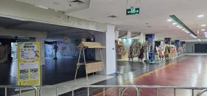Oops, I was seen. I skedaddled out of there to the elevator leading down to the third floor. I was still on the fourth floor at this point, and a lot of the “inner” shops in the maze of corridors were occupied, but there were a bunch of the outer ones that were not. And then there were these ones, by the escalator I used, that were not really even shops at all.