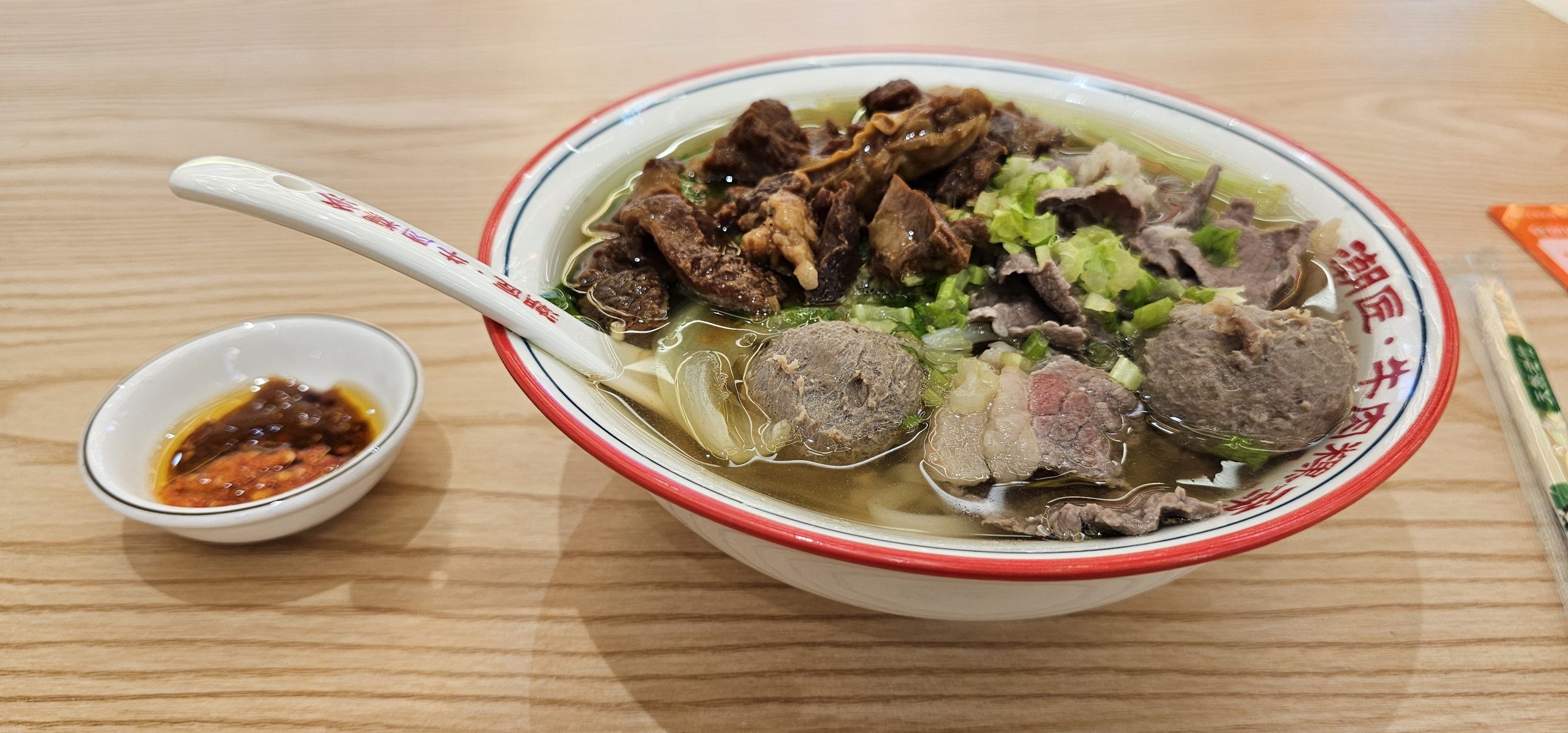 In the end, I ended up choosing a store named Chaojiang Niurou Guotiao, and eating their Guotiao with fresh beef, beef meatballs, beef brisket, extra radish, and extra cabbage, for 30 CNY ($5.99 CAD).