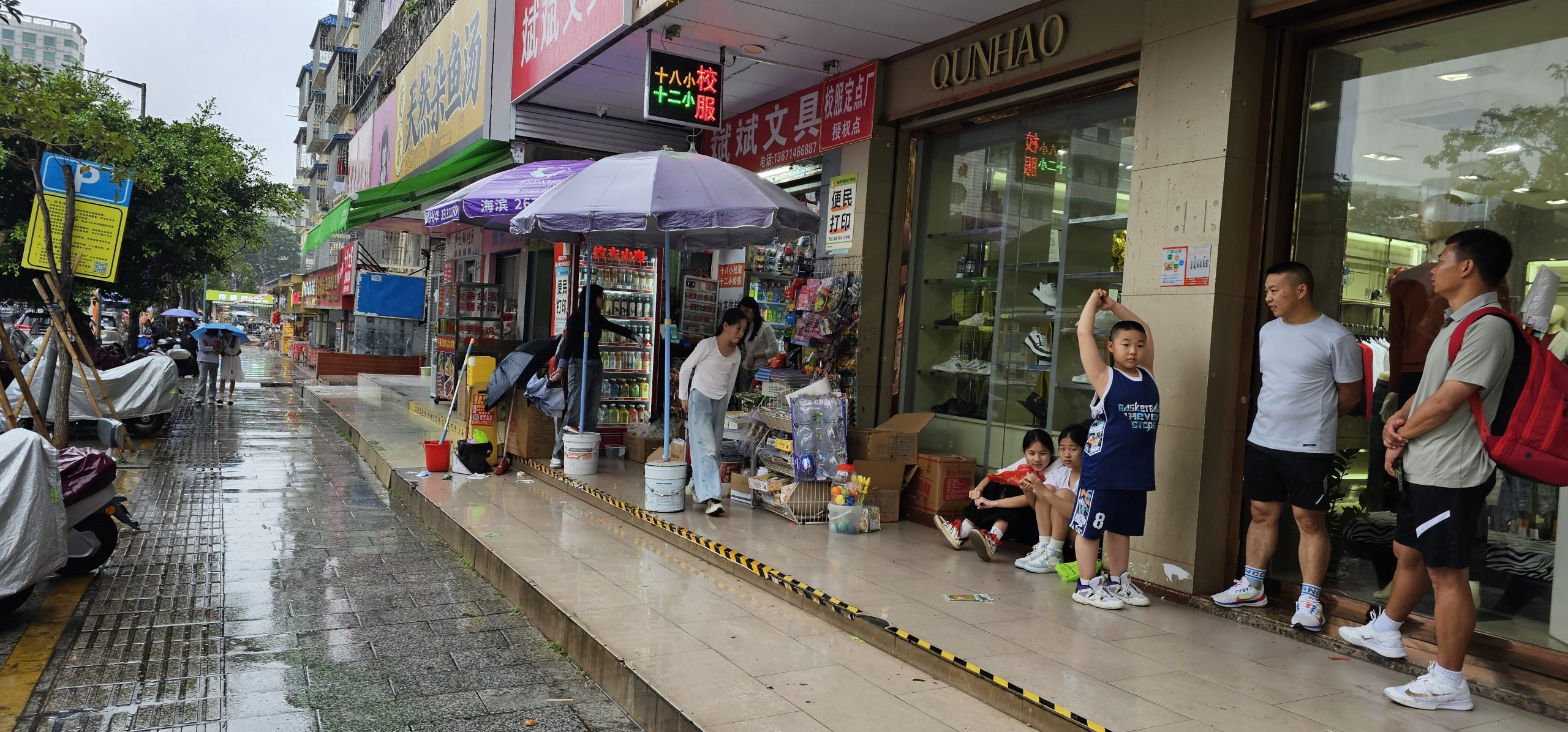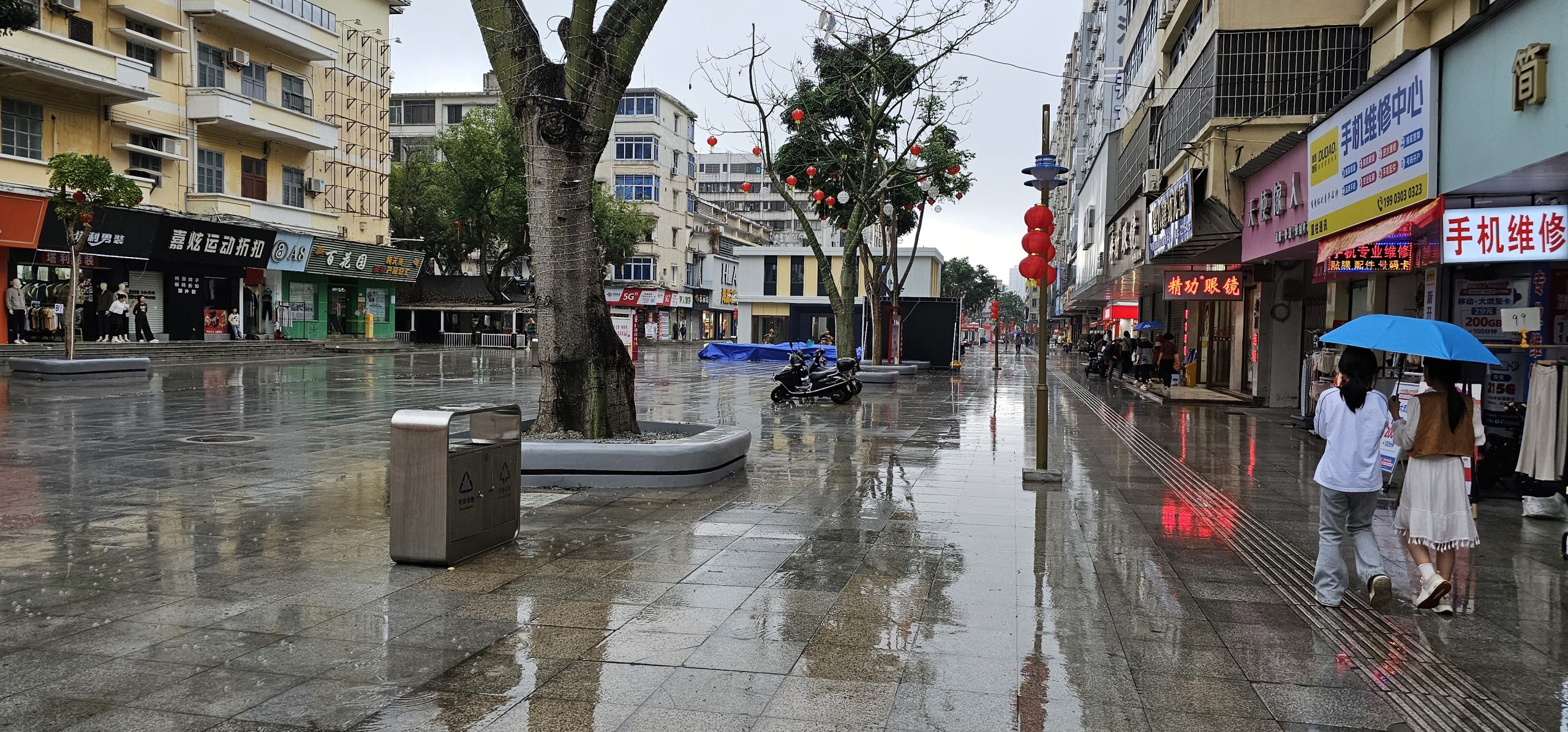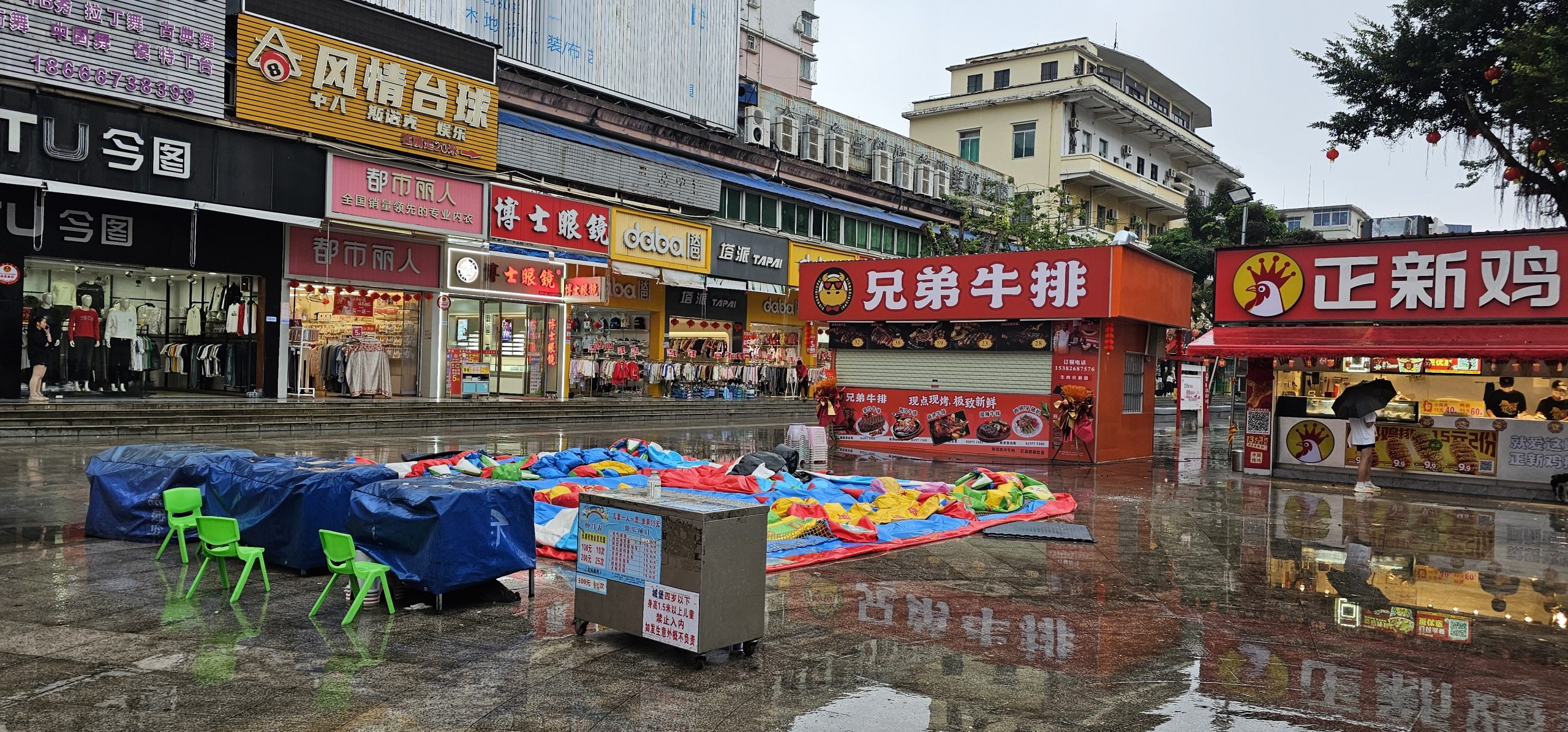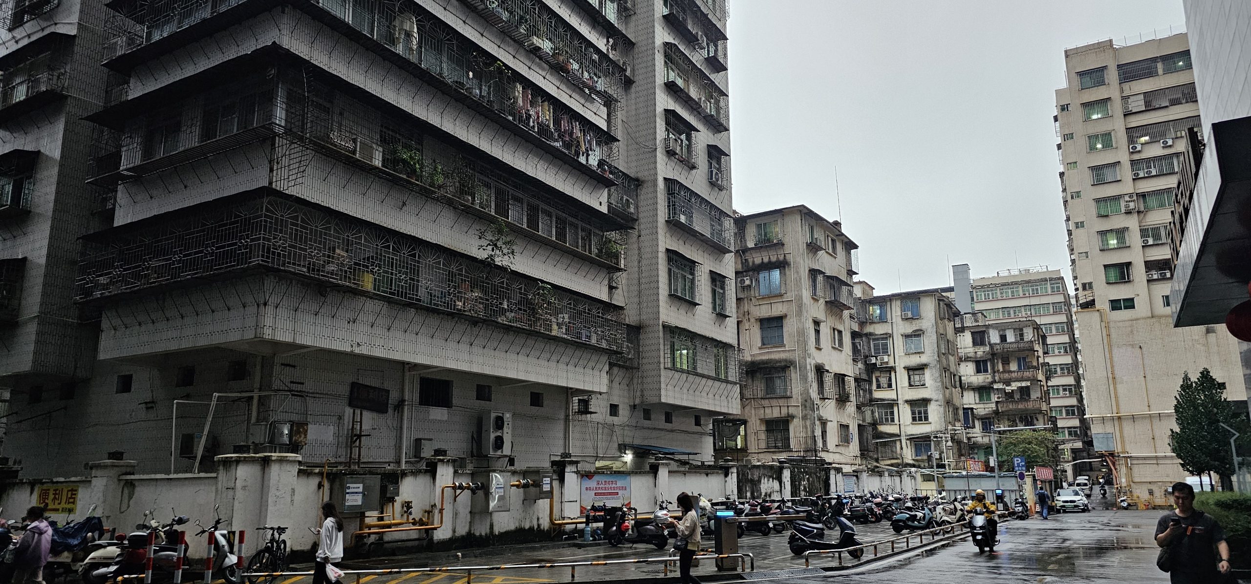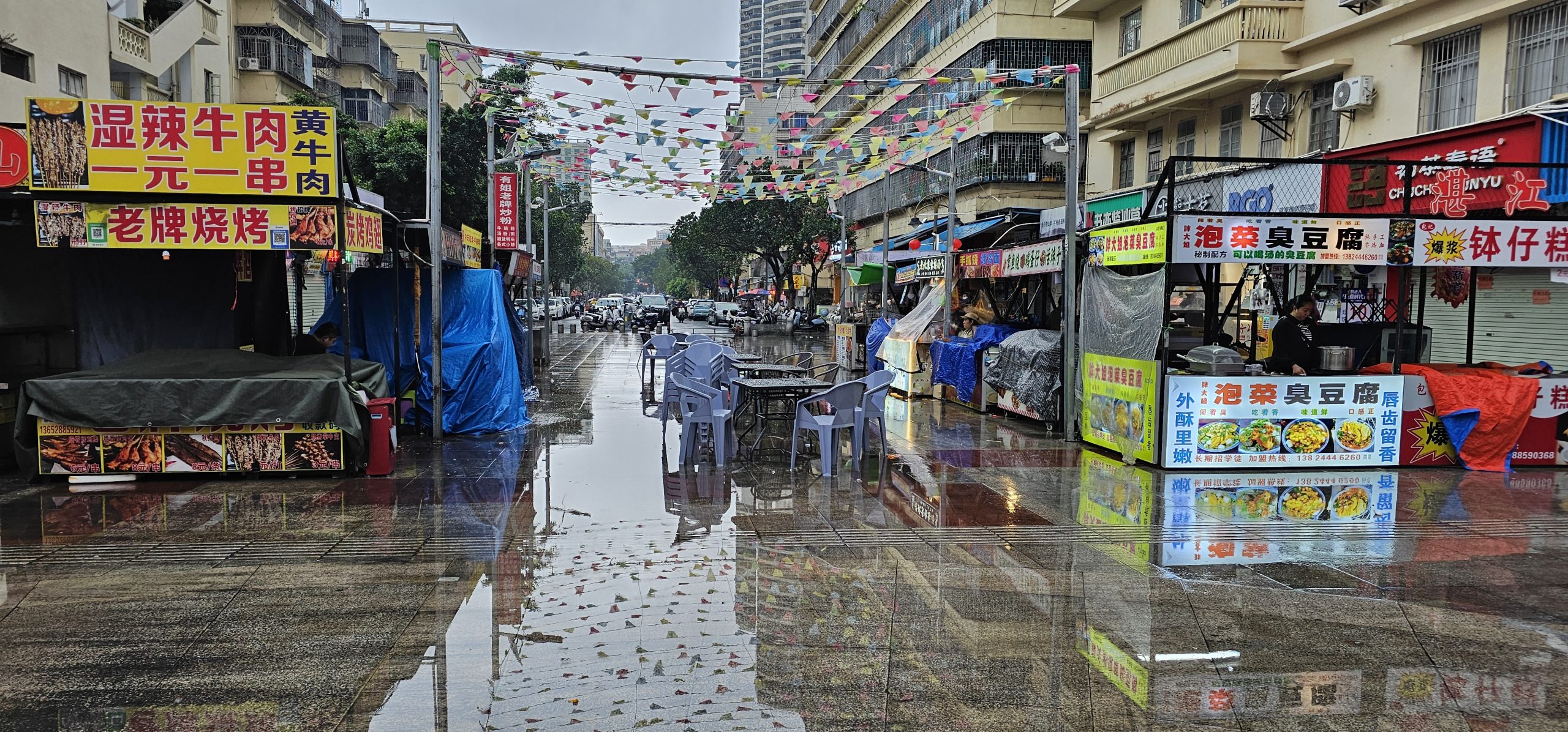 This neighbourhood was called Xiashan, and specifically I was around an area called the Xiashan Pedestrian Street, which seems like it had shops and stalls catering to people wandering by on a nice, wide, well-maintained street with not a ton of motorcycles around for once. Except that, well, because it was raining, many of those stalls were abandoned. That also meant that it felt a little liminal walking around here though, as the rain turned into a drizzle and then stopped, and then started to pour again, and then stopped again, and so on. There was a nice, cool breeze and I liked this area as it was being rained on very much.