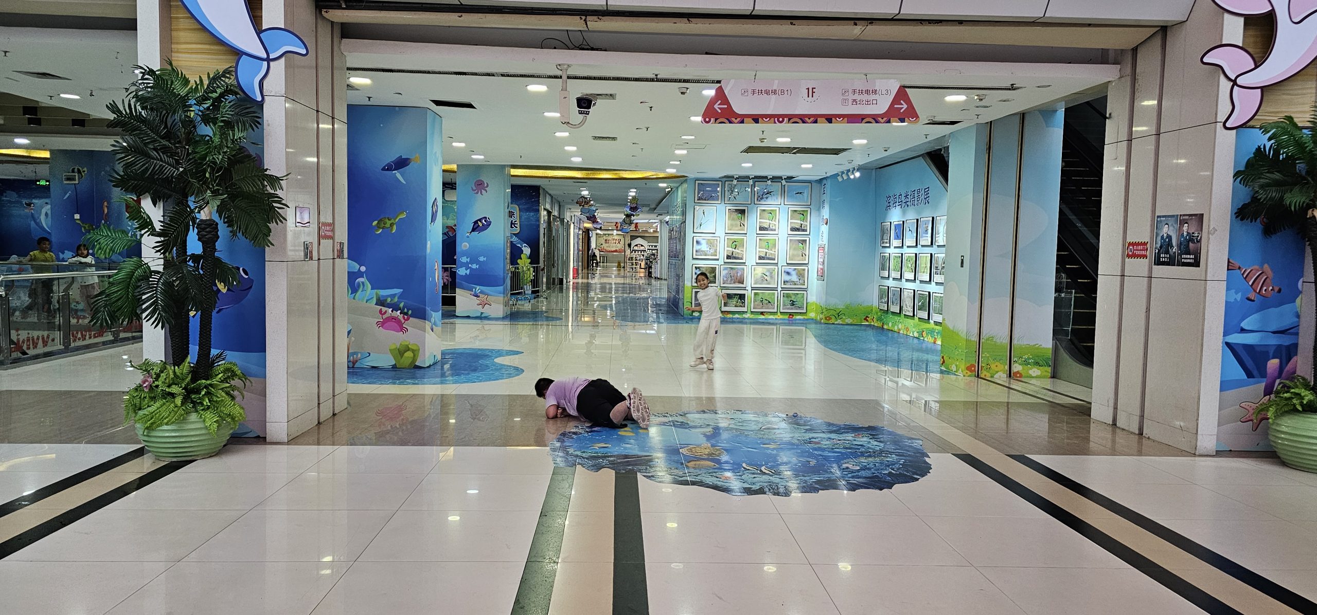 I guess you know a mall is largely unoccupied when kids are crawling around on the ground as part of their fun and games, huh. I immediately turned around and walked out.. no I didn’t. I love liminal malls, so that pulled me in.