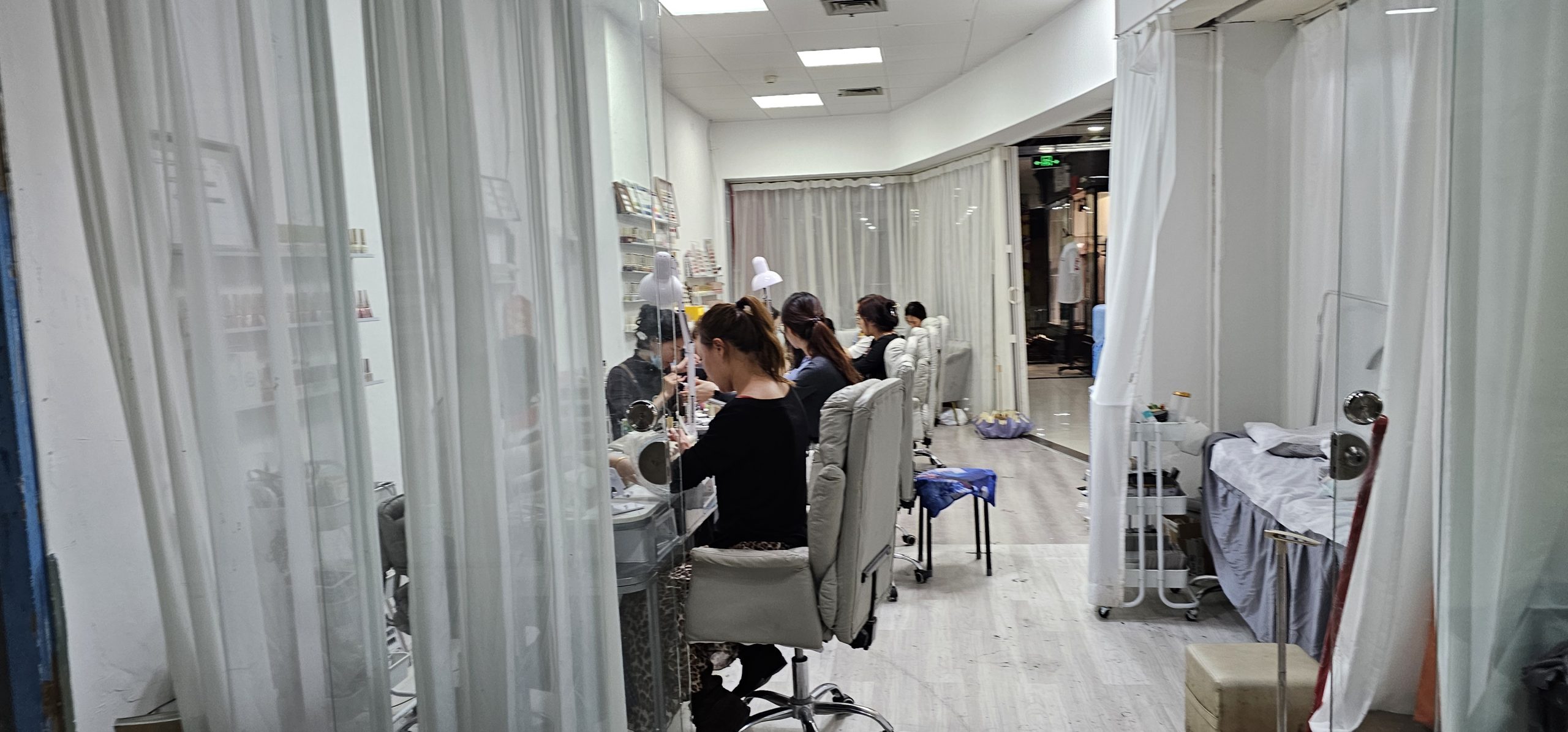 I really, really enjoyed walking around this maze. This is the sort of strata mall nonsense I live for. Tiny shops everywhere trying their best. I wonder how they survive without much foot traffic. There were people there, just not that many. Here’s a peek into some shops, starting with a manicure place with lots of customers: