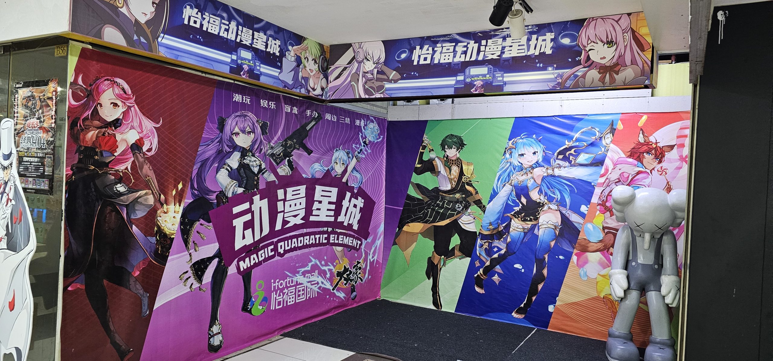 Sauntering off, I peeked around the basement, seeing things like whatever this was. I have no idea, since “Magic Quadratic Element” resolves to nothing at all on Google and 动漫星城 didn’t seem to turn out anything specifically useful either except a mall in Guangzhou that I’ve actually been to before. Also check out that little sad statue in the corner.