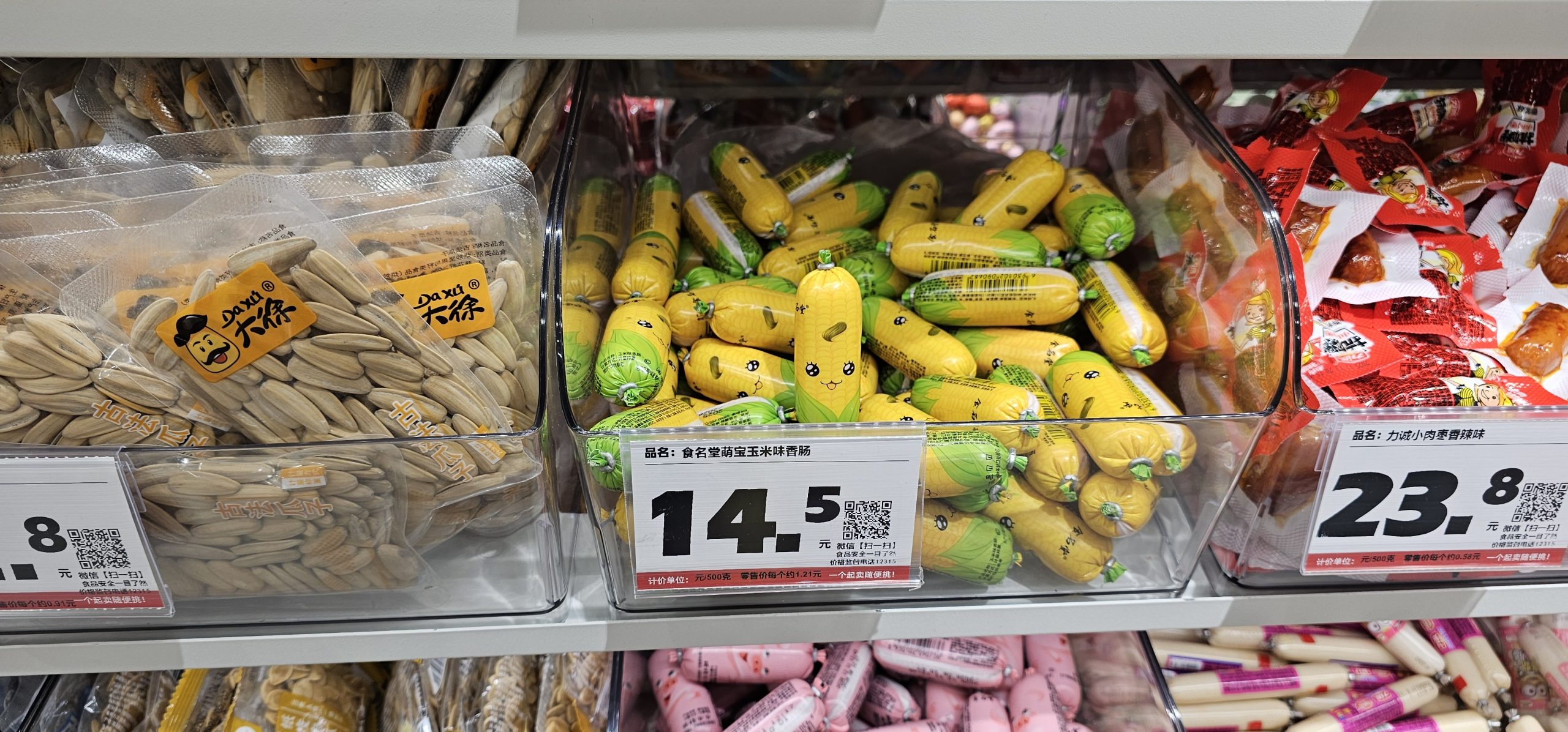 I might be wrong, but I feel like I saw a lot more of the XX.99 yuan pricing here for items, whereas in the past supermarkets that I went to, I saw them just do it to one decimal places, XX.9 yuan.