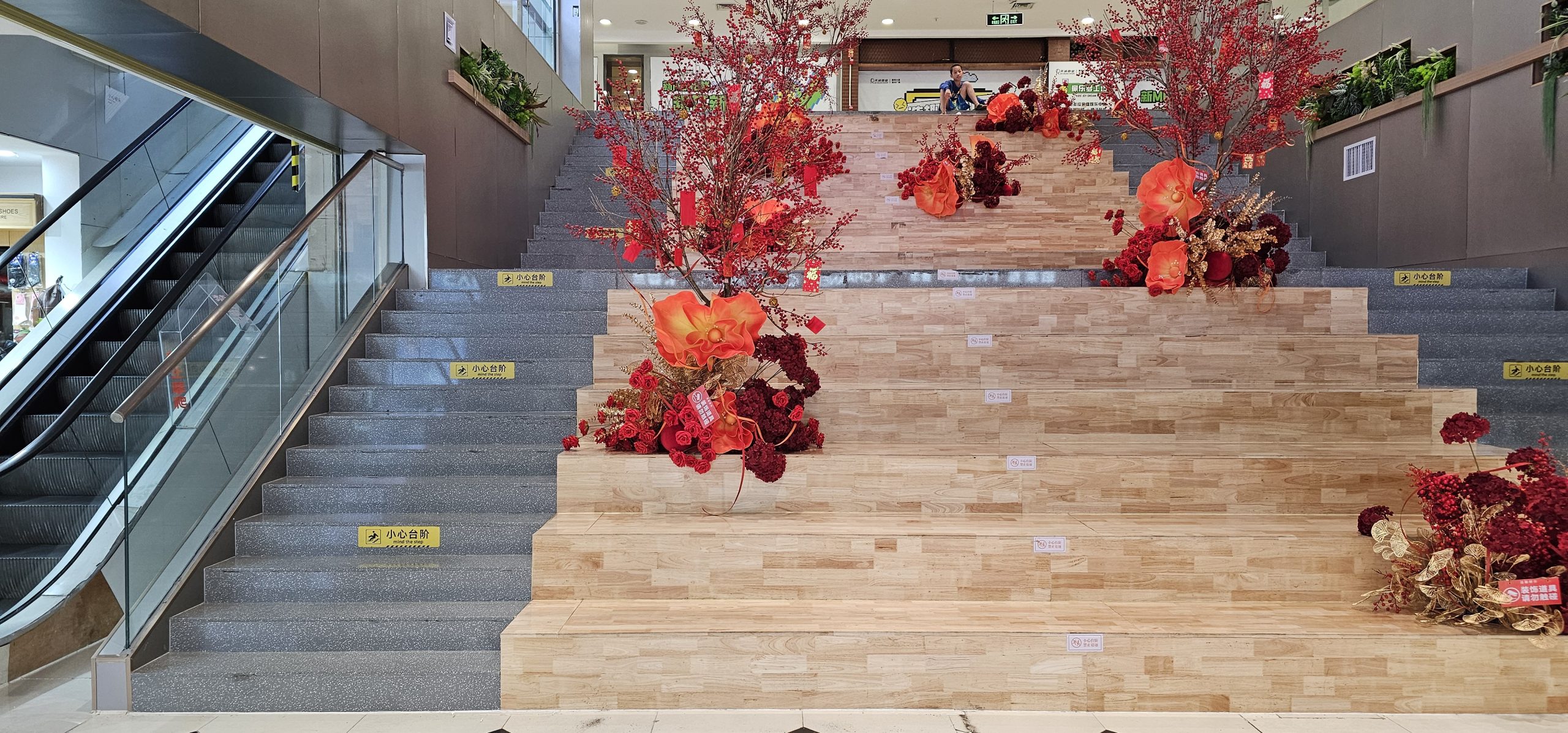 By this time I had actually scanned one of the QR codes on a random table on the second floor of the food mall and found that I could use that to get a listing of all the shops in the court, ranked by popularity (how many sales they had made that day), and I could also access a lot of their food menus from there. That was much easier than walking in circles trying to decipher menus and figure out what was local, so I sat down on that resting area where the red trees were, half-watching the cartoon on the large TV overhead as I rested. It featured boys wearing lion dance outfits of different colours competing in some competition that involved parkouring up poles and then having a red vs blue martial arts style battle at the very top pole to try to claim a prize ball there.