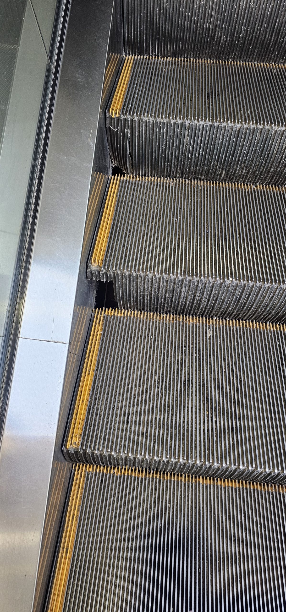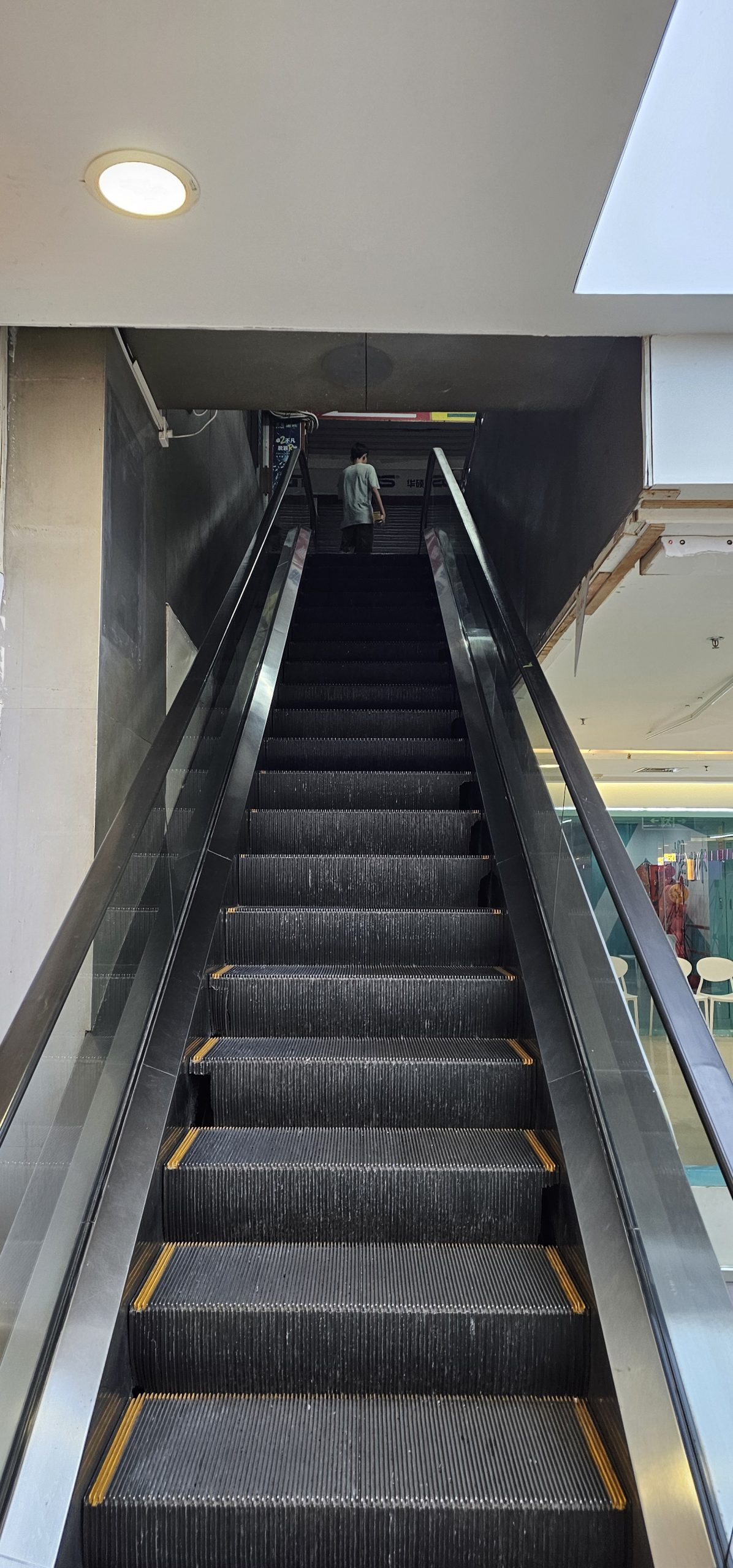 Never mind turned off, the escalator was so dilapidated that there were holes in it and I wasn’t completely sure it was safe to climb. It was, for now, though. But how does an escalator get this run-down?