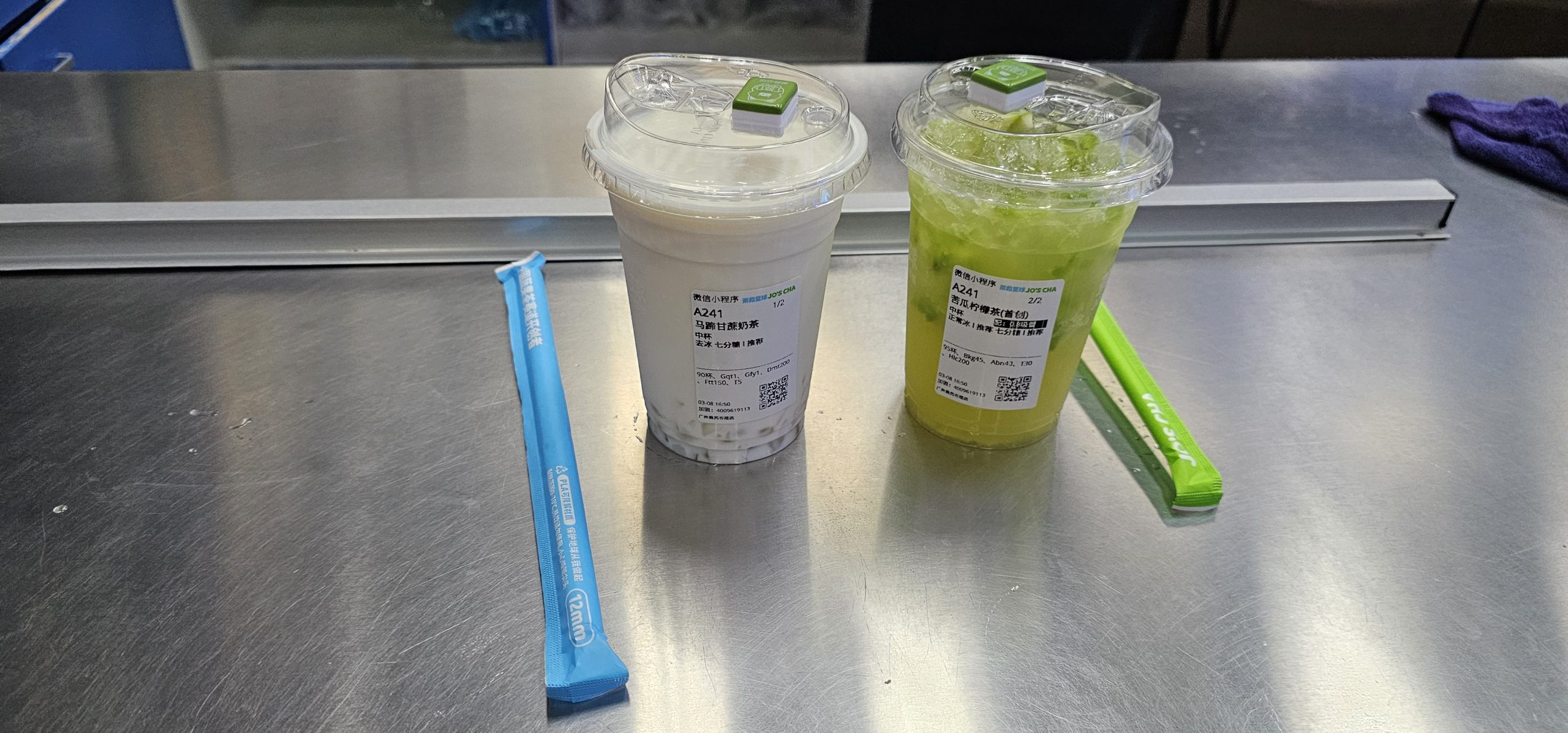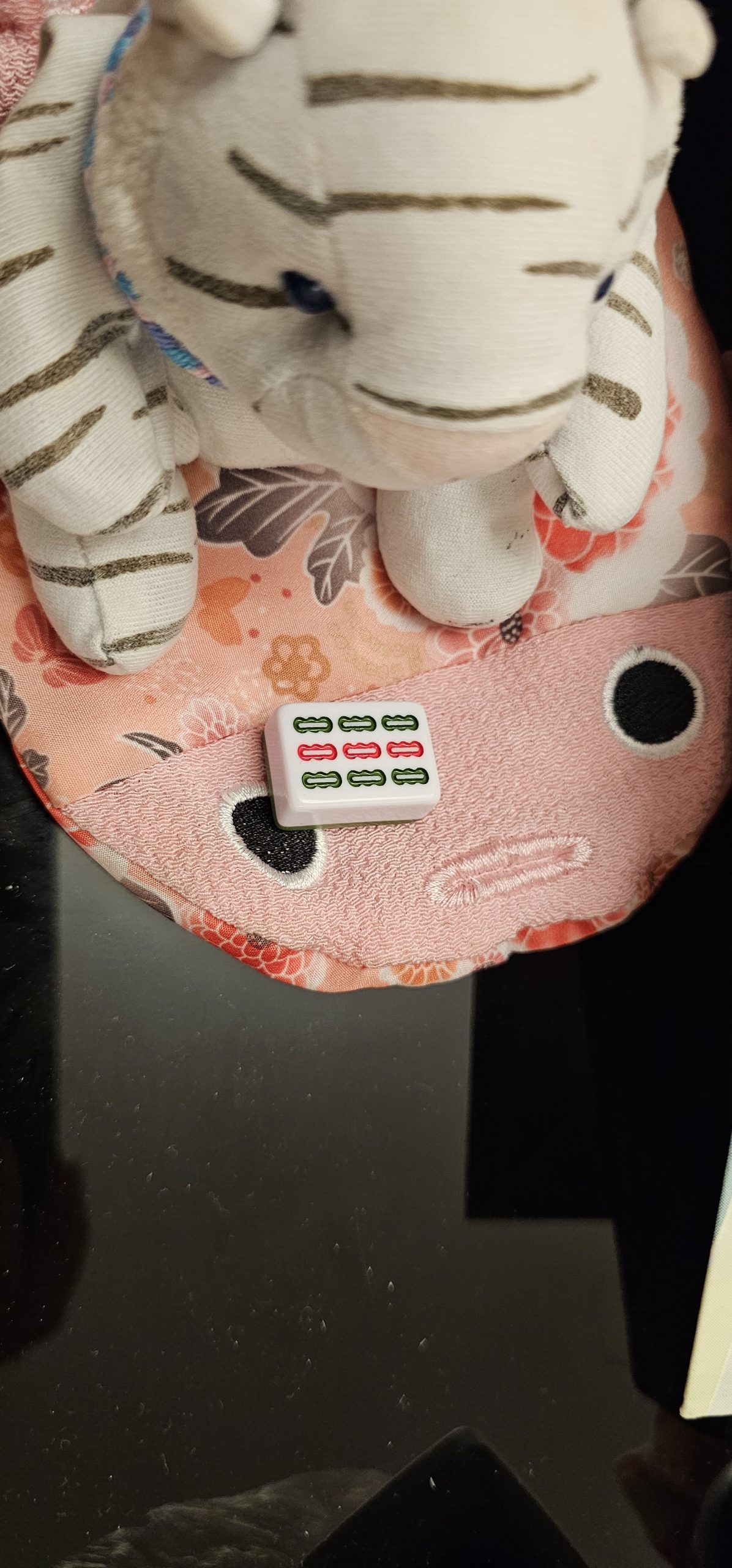 Kel then stopped by a store called Jo’s Cha and showed me their drinks and promotion. Kind of similarly to Linlee, this store also gives away a little trinket per tea drink someone buys from them, in this case a mahjong tile! We requisitioned two drinks and sat at a table where two other people had already finished and left their drinks for discarding without taking their mahjong tiles. So we ended up with four in total from this trip. I ordered bitter melon with lemon tea, which tasted strange but decent as long as I didn’t actually suck up any of the actual bitter melon inside through the straw. And the tile that I ended up with for my first ever Jo’s Cha mahjong tile was the 9 of bamboos.
