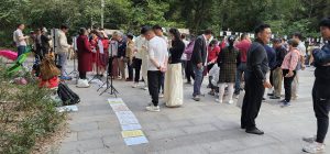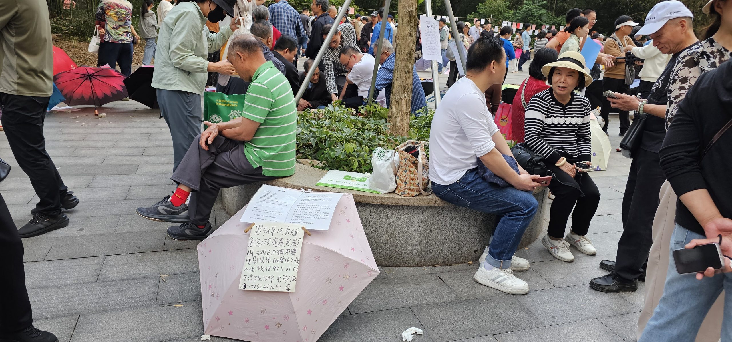 It was nice, but very busy, though that was probably due to it being a pleasant Saturday afternoon. We were looking for something specific in here though, and we soon found it — there was a specific event called a Marriage Market here. Basically, people — often parents, and sometimes without knowledge by their children — would come here with printed particulars of their own or their kid’s own personal details, and try to find them a blind date match with someone else in an attempt to find them someone to marry. It’s like a market for single people. We had no idea what to expect, but it turned out to look like this.
