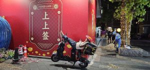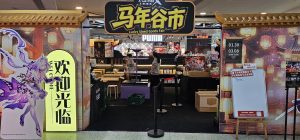 That was 19 yuan, or $3.73 CAD. I stuck it on Kel‘s fridge for now, I’m not sure she noticed. I’m not sure I’ll remember to take it either, though. The other place I bought an item from was a miHoyo pop-up store or something just outside a shop caled X-Gather. The store looked like this: