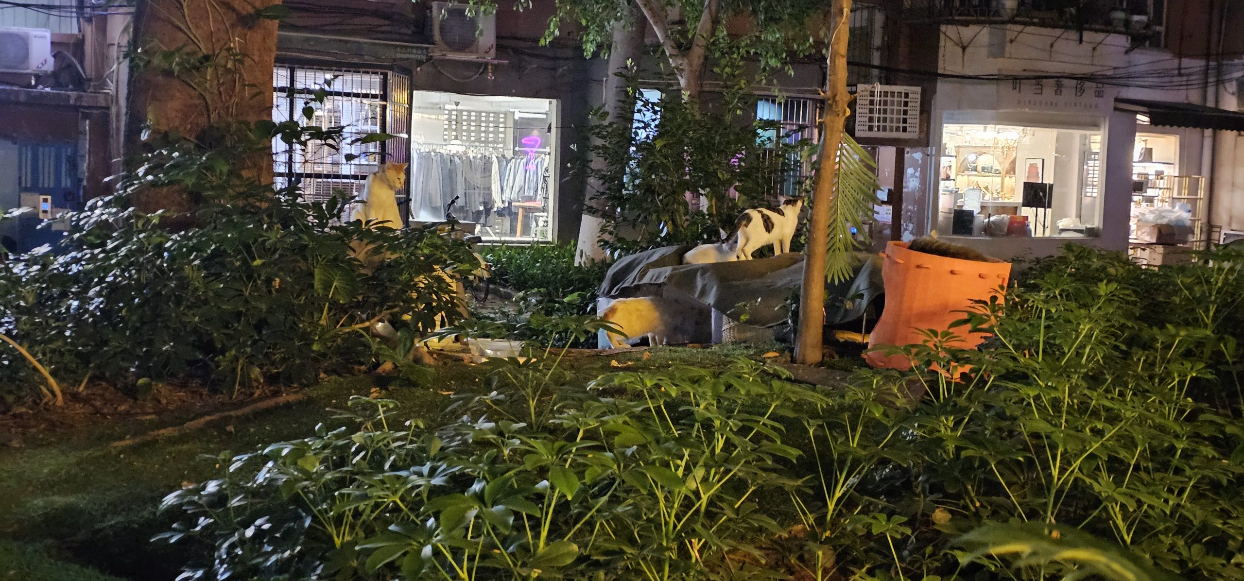 In fact, there was what basically was a little cat shrine in the grassy park area directly outside the store, with bowls and areas to perch set up for the stray cats in the neighbourhood. As such, a bunch of cats had congregated there and stared at me and others as we went by.