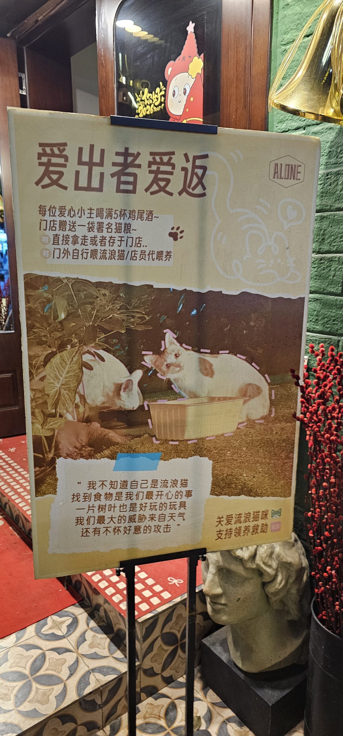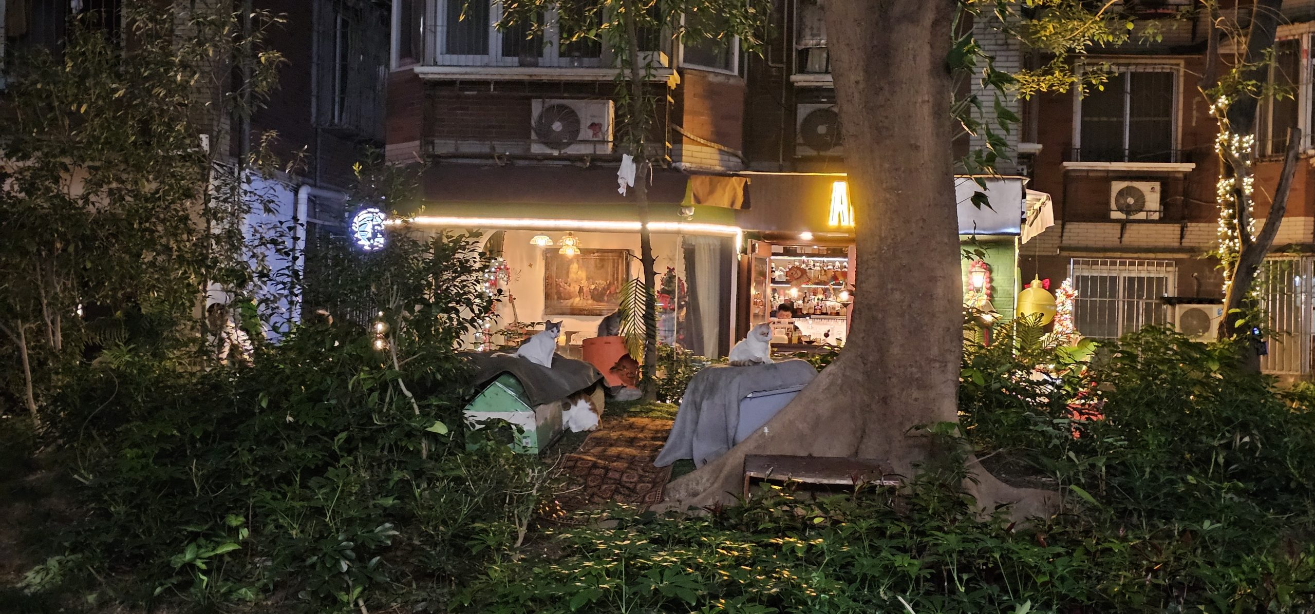 I took over the exploration from here and we checked out some of the side alleys linked to this main street. One of them featured a cocktail bar called ALONE with a heavy stray cat focus.