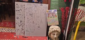 So people would hang up those papers (or prop them on an umbrella) and then either wait for someone to show interest, or walk around looking for other matching sheets of interest. For themselves, for their kid, or from what it looked like, sometimes even for their clients? A few people had a pile of different ones that they listed out in front of them on the floor.