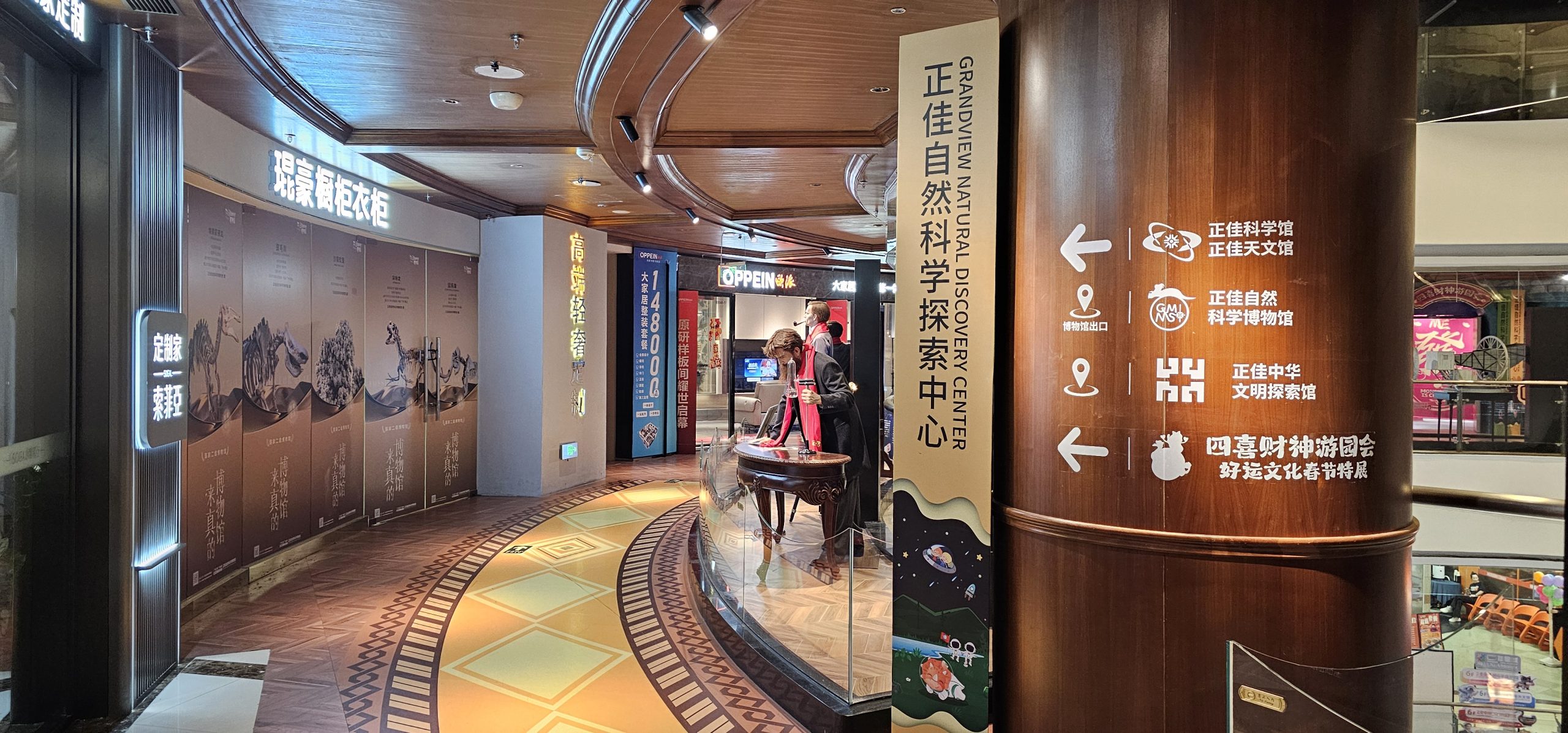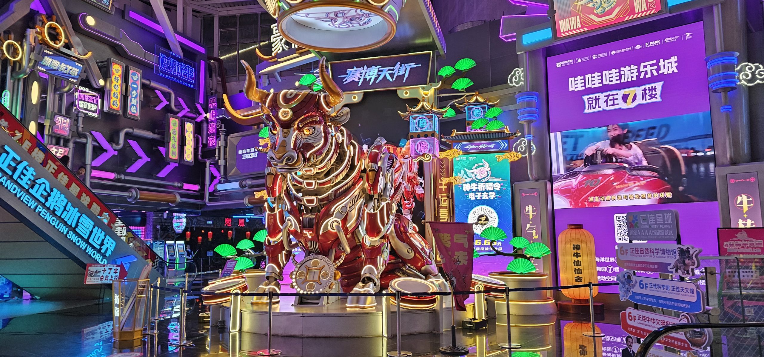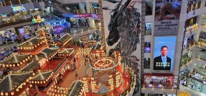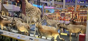 The 4th level had a safari display going some of the way around the atrium walkway on that level, showing a stampede of safari animals running by. Definitely a commentary on the number of people in that mall flowing by as well.