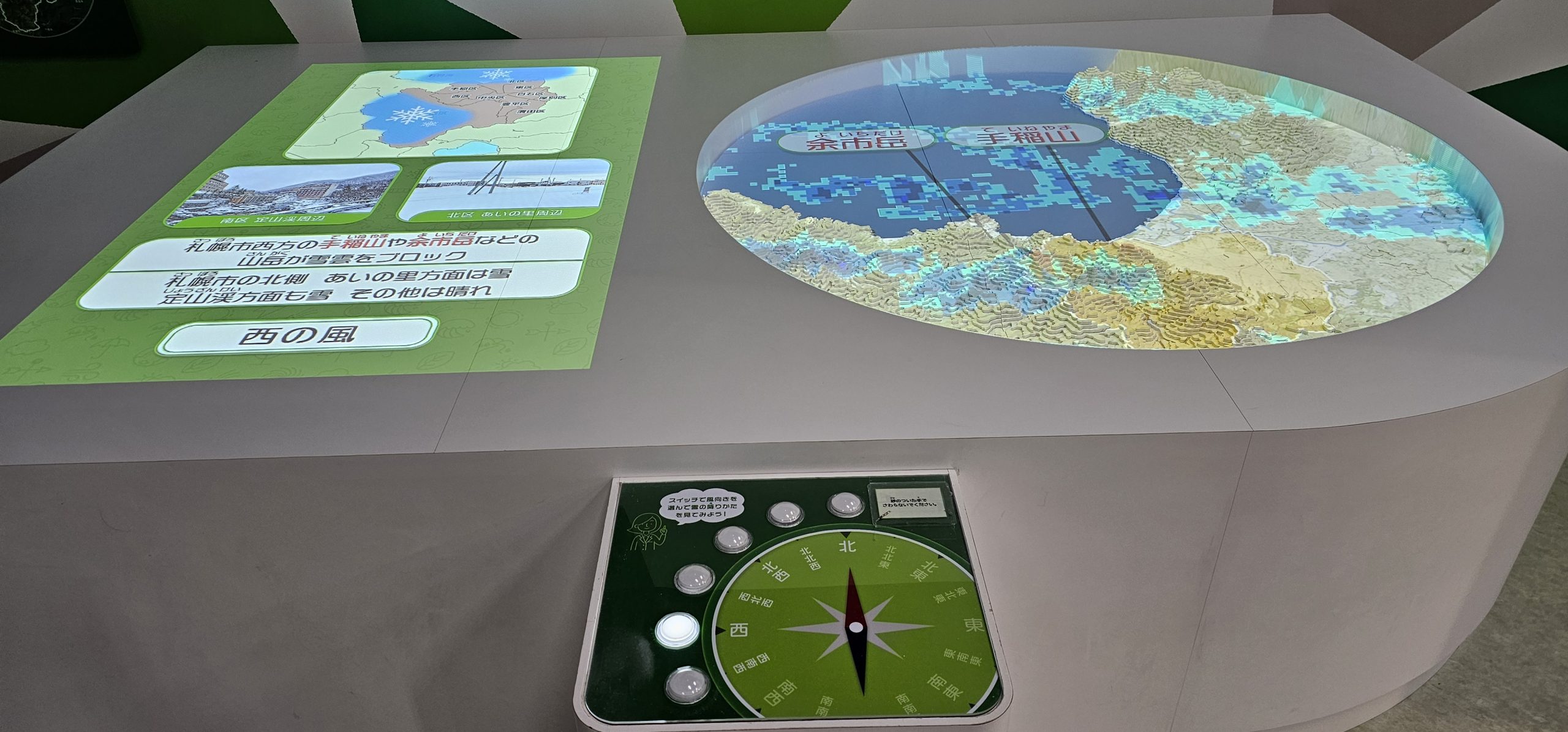 Although of course the visuals and interactive buttons made some things easy enough to understand the coolness factor of, like this thing that showed the effect of wind from different directions and how it affected the climate around Sapporo: