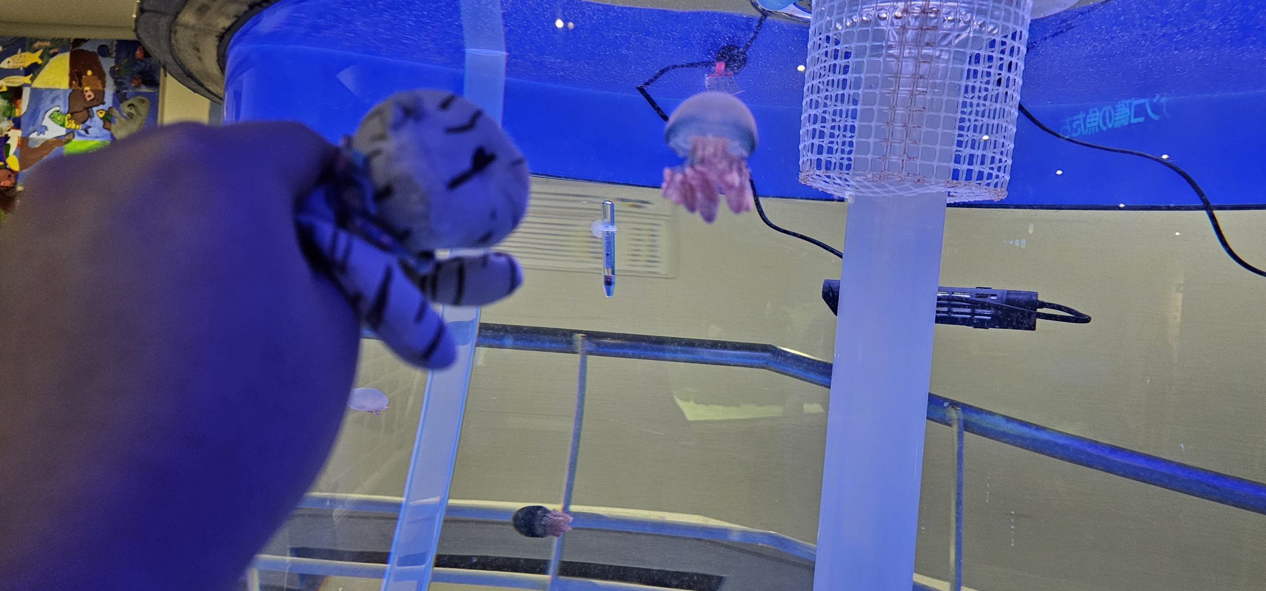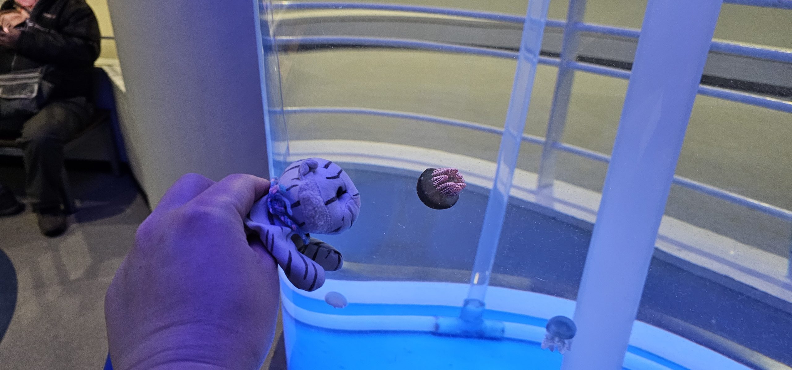 They also had a tube tank of these really, really tiny starfishes that Tigey was enamoured by, partially because they resemble a certain other plushie: