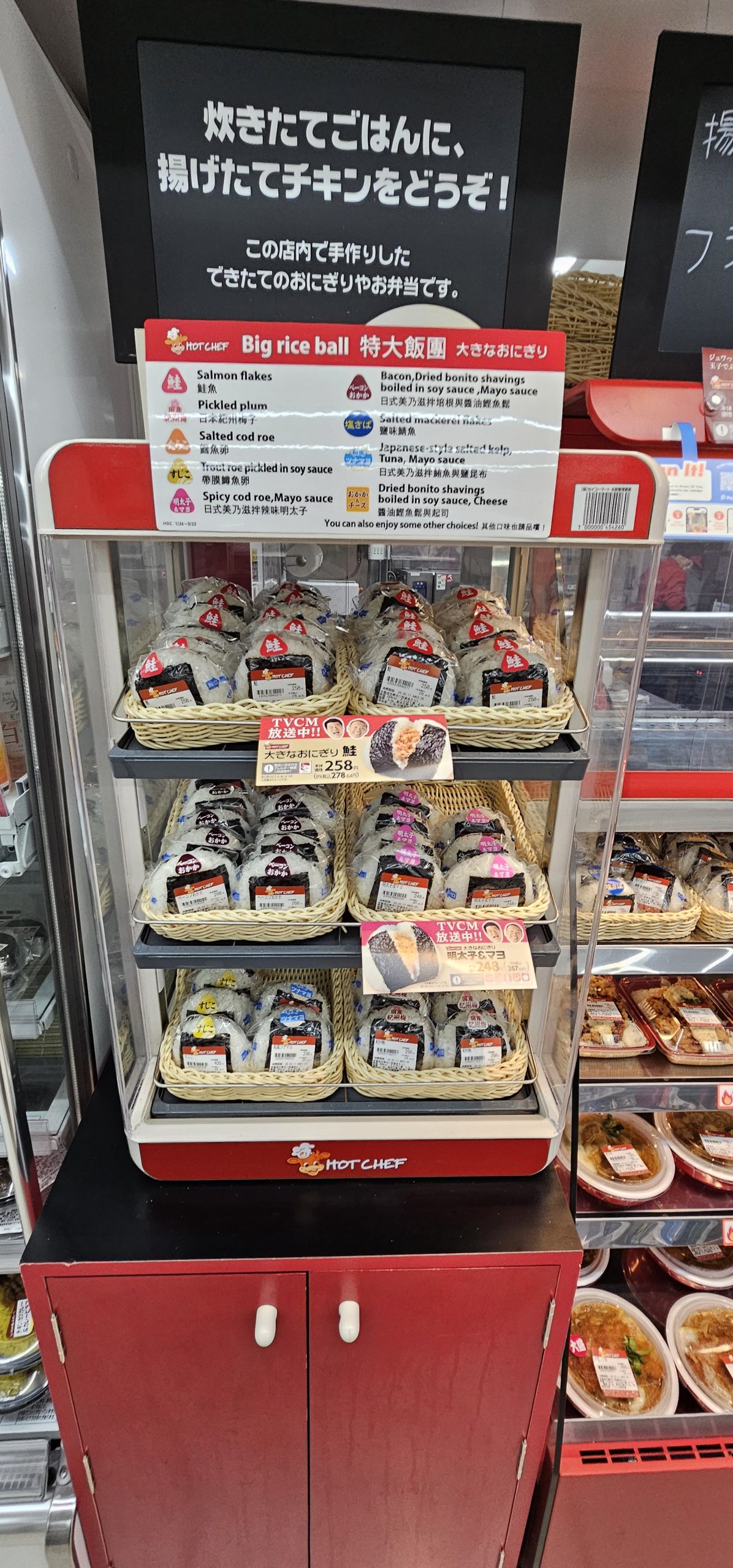 Not bad, not bad at all. Finally, at the very last Seicomart next to my hotel of all things, I found a whole bunch of the hot onigiri, including the one Gemini really wanted me to try. Eureka! I bought that, as well as a bacon okaka flavoured one, and brought them back to the hotel to eat. They were both really good.