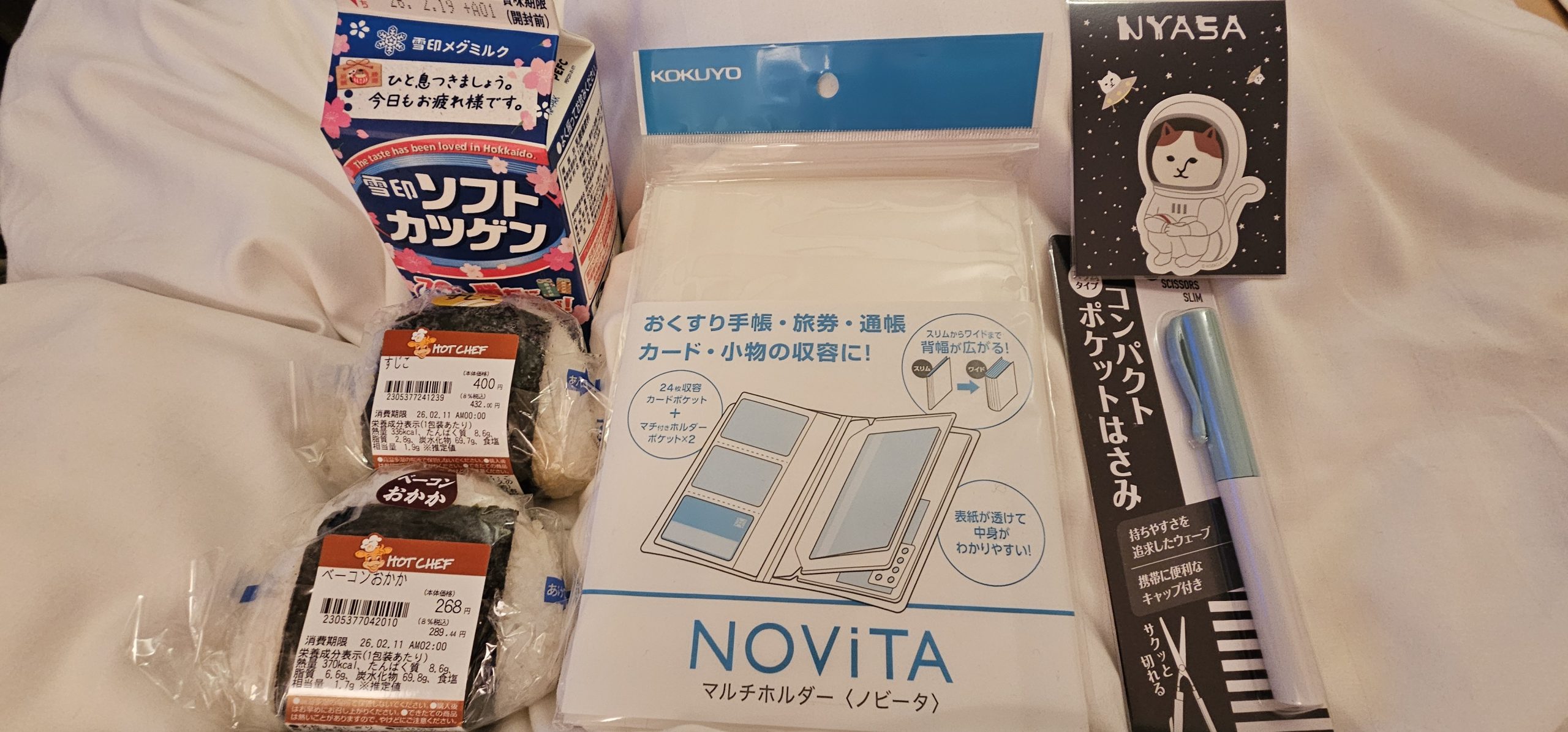 But I had about enough of Shin-Sapporo anyway so I went back to Sapporo Station soon after. I hadn’t had a proper meal all day, so why stop now — I asked Gemini for some convenience store recommendations and it told me to try a Seicomart, and look for their “Hot Chef” rack for fresh, piping hot onigiri to try. It specifically wanted me to look for the sujiko flavoured one, basically salted salmon eggs, that it said were considered a local delicacy. It also suggested a drink, Soft Katsugen, which it said tasted like a stronger Yakult, a drink I do like, and it described the drink as a probiotic for my recovering self. Sure, why not.