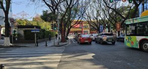 It was 6 pm once I got tired of the mall, and I went out to the junction to cross the road. The other TeeMall is visible on the right here. As opposed to the one “behind” me that I just stepped out of.