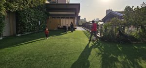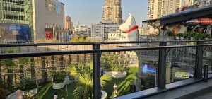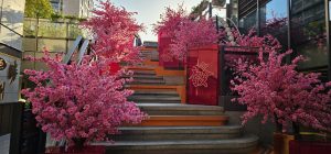 And then there was a pretty pink-lined staircase going up to the level 5 terrace, where there were also more restaurants, but higher scale than the ones on the fourth level, as well as offices. There was also a really nice washroom right in the far corner of that top level of the mall, so that felt like finding a little, hidden piece of treasure.