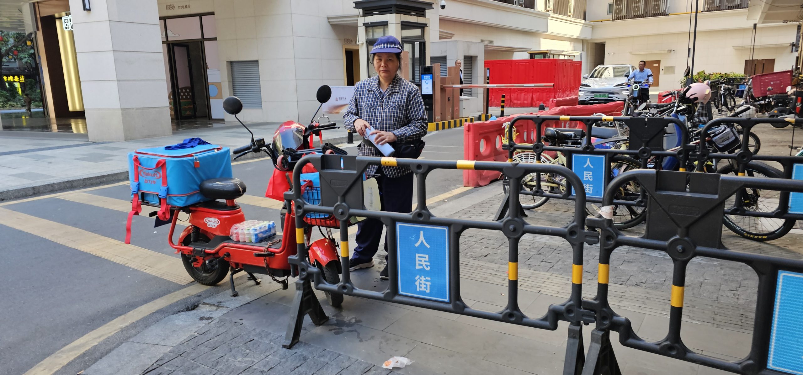 There was also a Yakult lady there. I was surprised she was looking at the camera here upon reviewing the shots after because I started taking pictures of the building next to her and then swung the camera down for one without purposefully looking at her, but it came out to a nice shot anyway. The reason this is significant is because I had recently read this article about Yakult Ladies (local) in Japan, and their role in society, so to not only see one in Guangzhou, China but to also be able to capture such a nice shot was a nice footnote for the vacation.