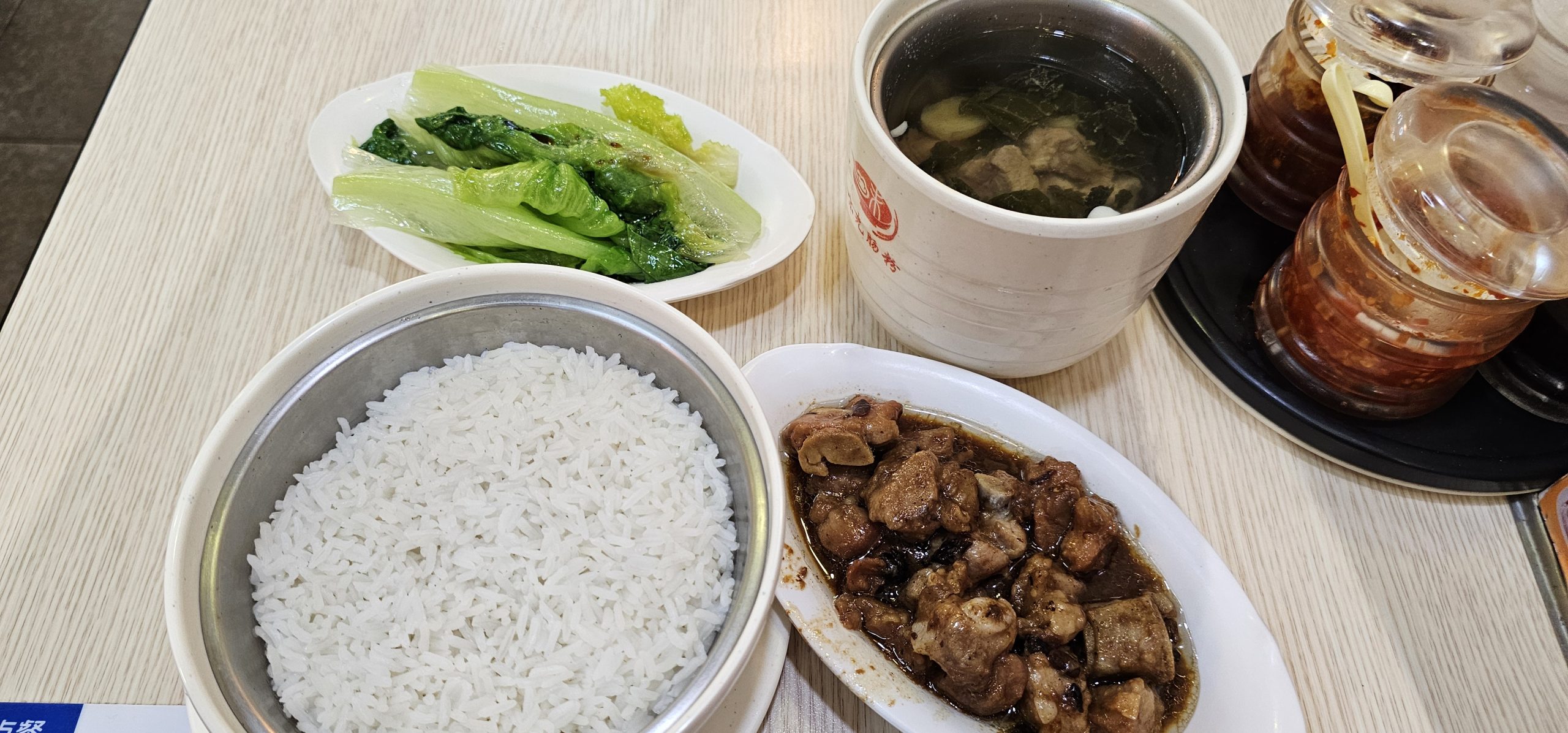 I had a late lunch at a nearby shop called Wei Xian Rice Noodle Rolls, and I basically gave Gemini the set meal menu and told it to pick an item out for me. It went for the “local authentic meal” route and picked this, which translated to something like Spare Ribs Rice with Black Bean Sauce + Stewed Pork Lung Soup with Dried Vegetables: