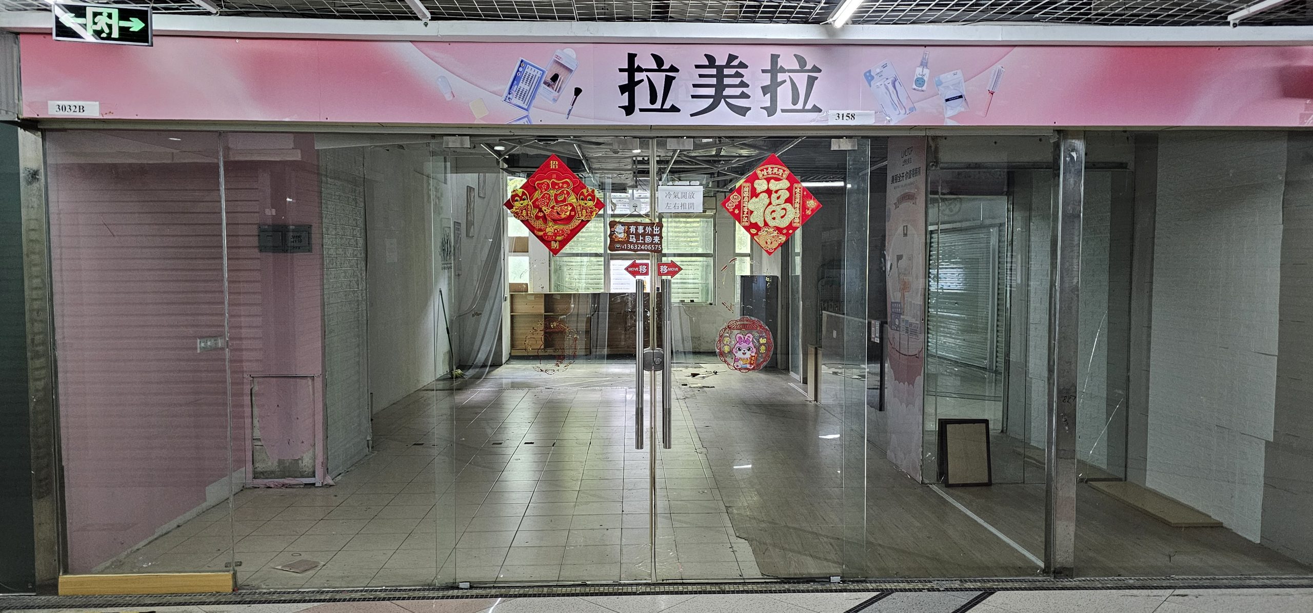 And you know how old and abandoned the mall is when one wall had a bunch of New Year posters mounted to the wall… from 2015! It’s going to go all the way around and be the Year of the Goat again next year!
