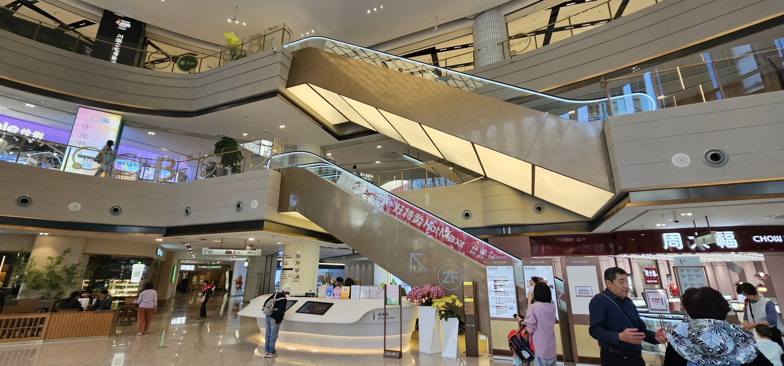 And then there was a pretty pink-lined staircase going up to the level 5 terrace, where there were also more restaurants, but higher scale than the ones on the fourth level, as well as offices. There was also a really nice washroom right in the far corner of that top level of the mall, so that felt like finding a little, hidden piece of treasure.