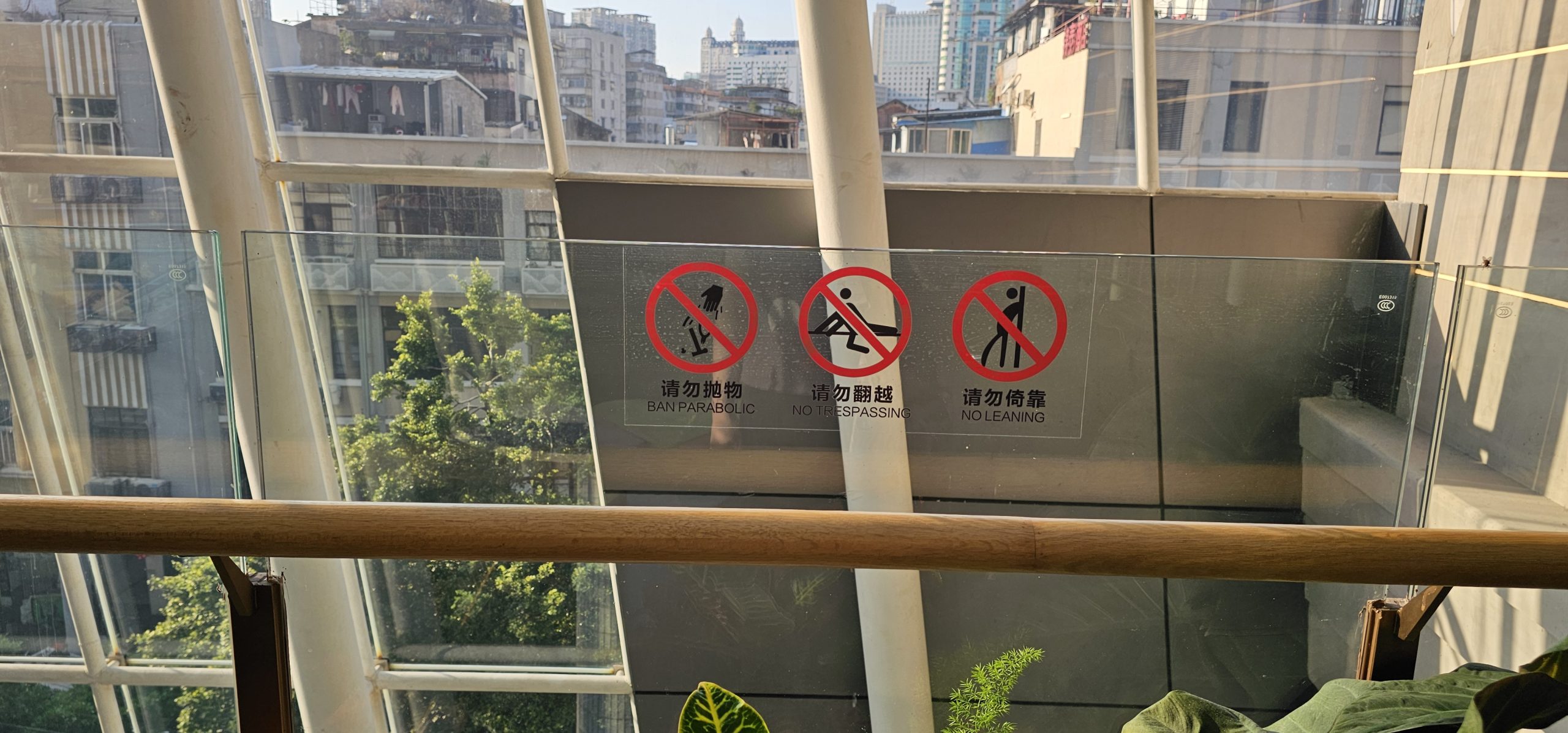 There was also an outdoor garden on the 4th and 5th level, and I went up there to look around, passing this parabolic sign along the way.