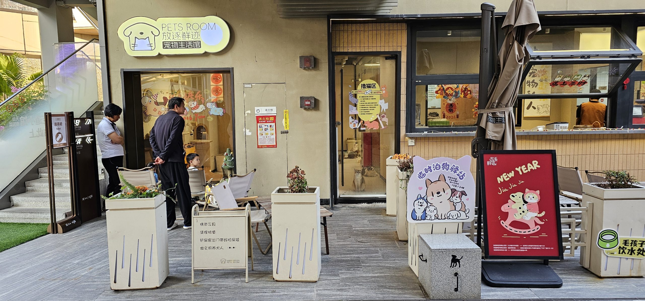 The fourth level had a walkway with restaurants along the side, and a pet cafe, of all things.